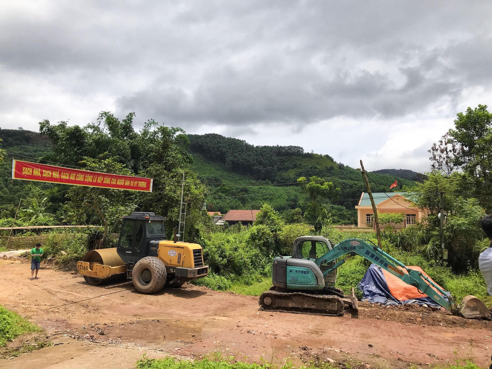 Nhà thầu tích cực thi công tuyến đường vào thôn Khe Phương