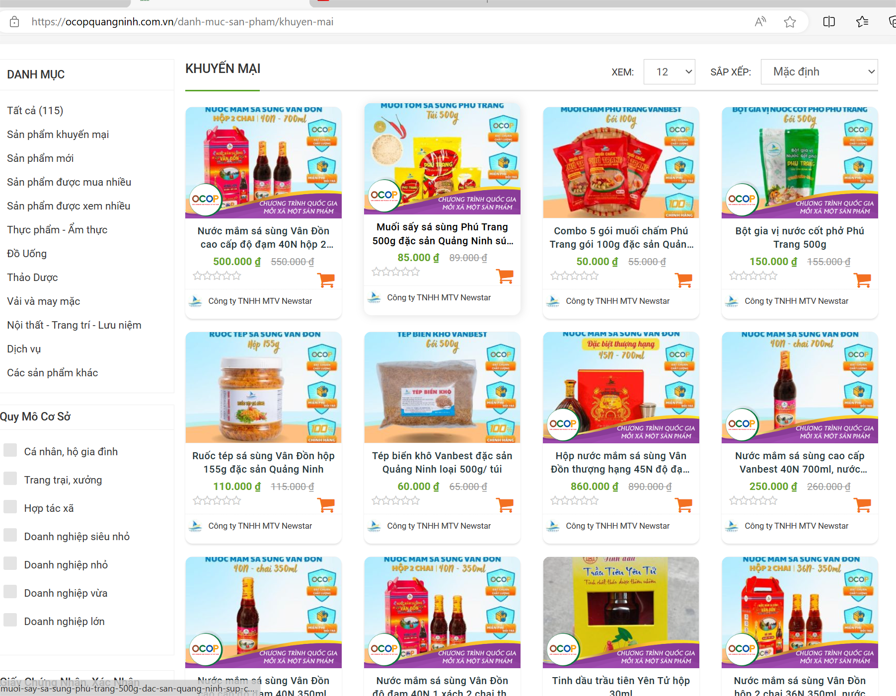 Sản phẩm OCOP Quảng Ninh được bán trên trang web https://ocopquangninh.com.vn. |