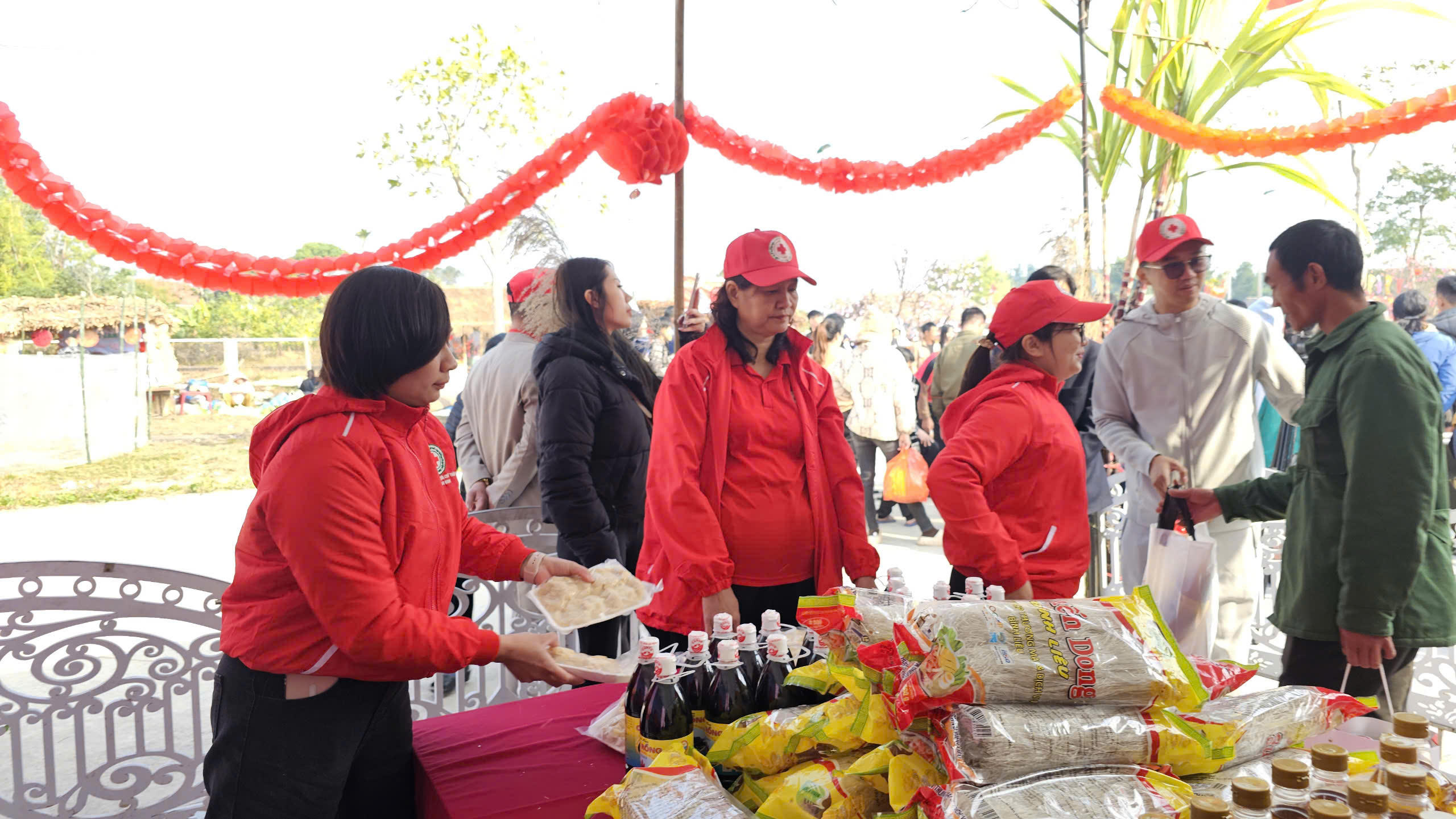 | Tại các gian hàng thành viên CLB sẽ hỗ trợ và trao các mặt hàng cho bà con. |