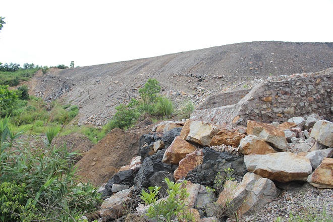 Ngoài ra, việc xả thải của đơn vị này cũng “có vấn đề”. Minh chứng là, khoảng cách tính từ chân bãi thải đến nhà nhiều hộ dân chỉ xa chưa đầy 50m và không hề có các biện pháp bảo đảm an toàn. Hộ gia đình ông Hoàng Ngọc Chi có nhà nằm liền kề ngay sát chân bãi thải bức xúc: