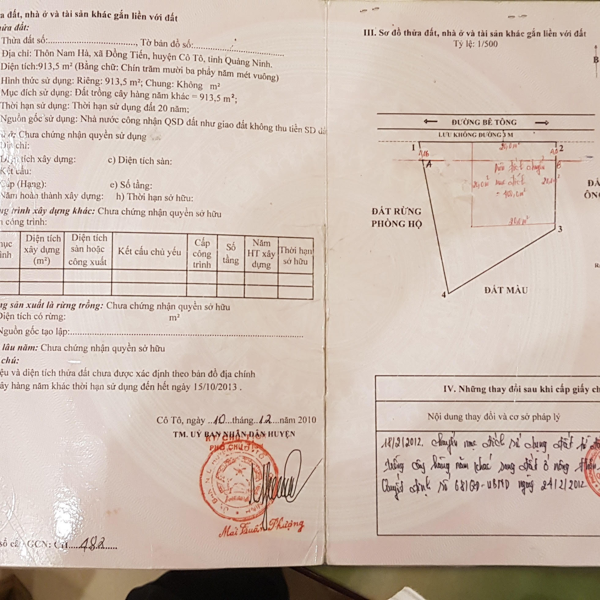(PLVN) - Người dân tại thôn Nam Hà, xã Đồng Tiến, huyện Cô Tô, tỉnh Quảng Ninh cho biết, hơn 1.000m2 đất rừng phòng hộ tại thửa đất số 654, tờ bản đồ số 2 bị biến thành đất trồng cây lâu năm rồi cấp “bìa đỏ” cho người dân.