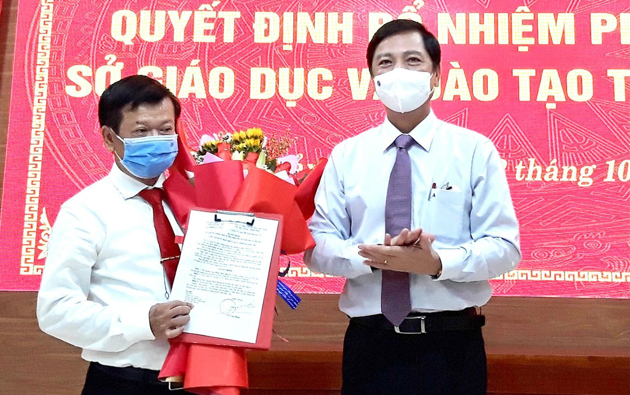 Phó Chủ tịch UBND tỉnh trao Quyết định cho ông Phan Hữu Huyện, Phó Giám đốc Sở GD&ĐT. |