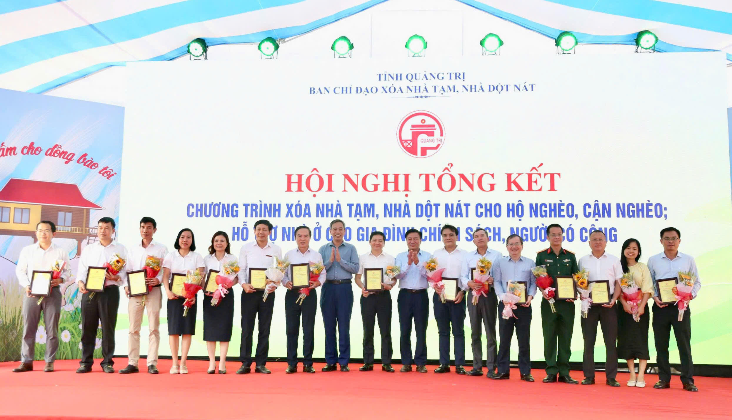 Ngày 23/6, tại hội nghị tổng kết Chương trình xóa nhà tạm, nhà dột nát và Chương trình hỗ trợ nhà ở cho hộ gia đình có công với cách mạng, thân nhân liệt sĩ trên địa bàn tỉnh Quảng Trị, Ban Thường vụ Tỉnh ủy và UBND tỉnh đã trao tặng bằng khen cho 36 tập thể, 36 cá nhân có thành tích xuất sắc trong thực hiện chương trình. Các nhà tài trợ tiêu biểu cũng được trao bảng Tri ân “Tấm lòng vàng”.