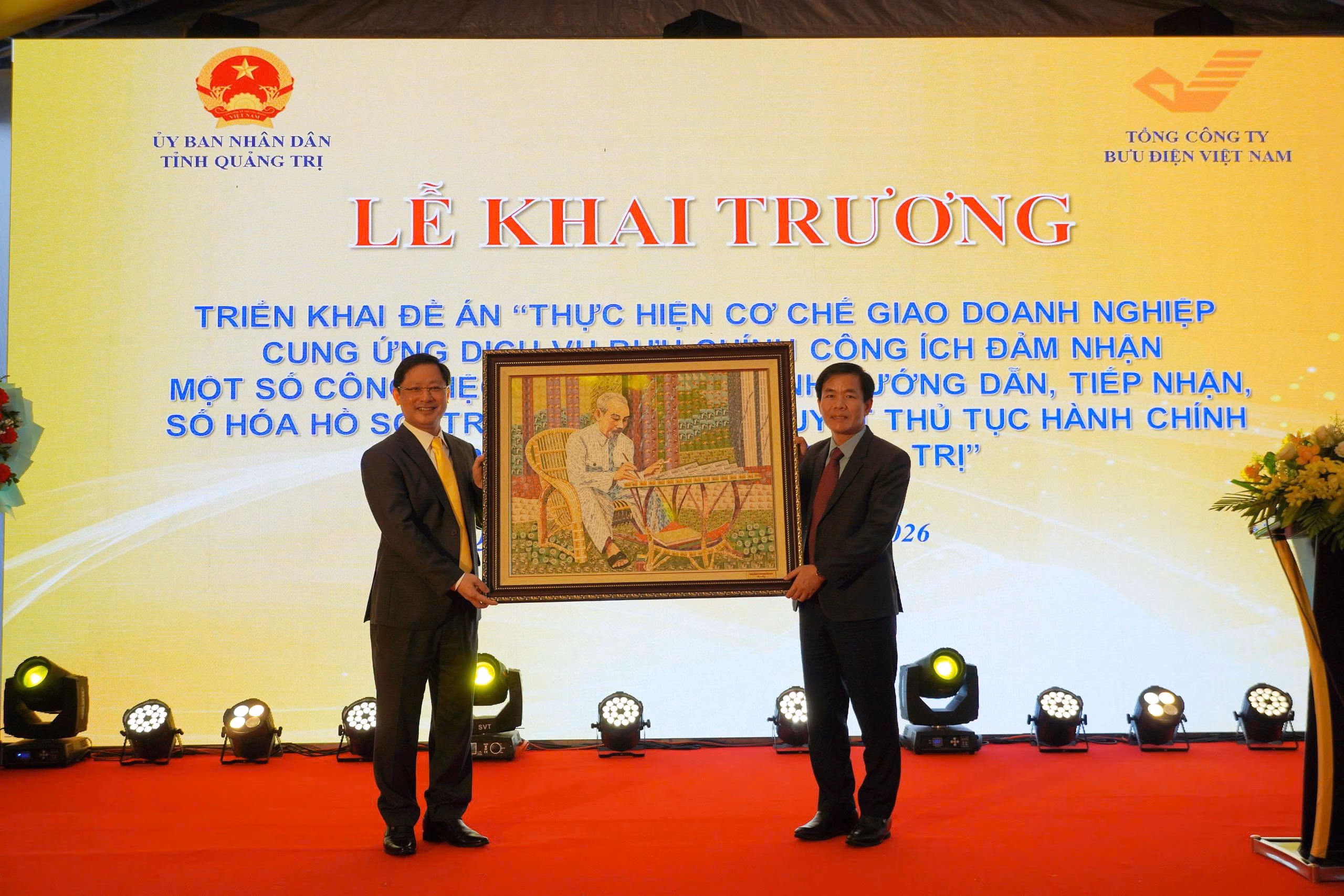 Chiều 18/9, tại phường Đồng Hới, Bưu điện tỉnh Quảng Trị tổ chức khai trương đề án “Thực hiện cơ chế giao doanh nghiệp cung ứng dịch vụ bưu chính công ích tham gia một số công việc trong quá trình hướng dẫn, tiếp nhận, số hóa hồ sơ và trả kết quả giải quyết thủ tục hành chính trên địa bàn tỉnh Quảng Trị”.