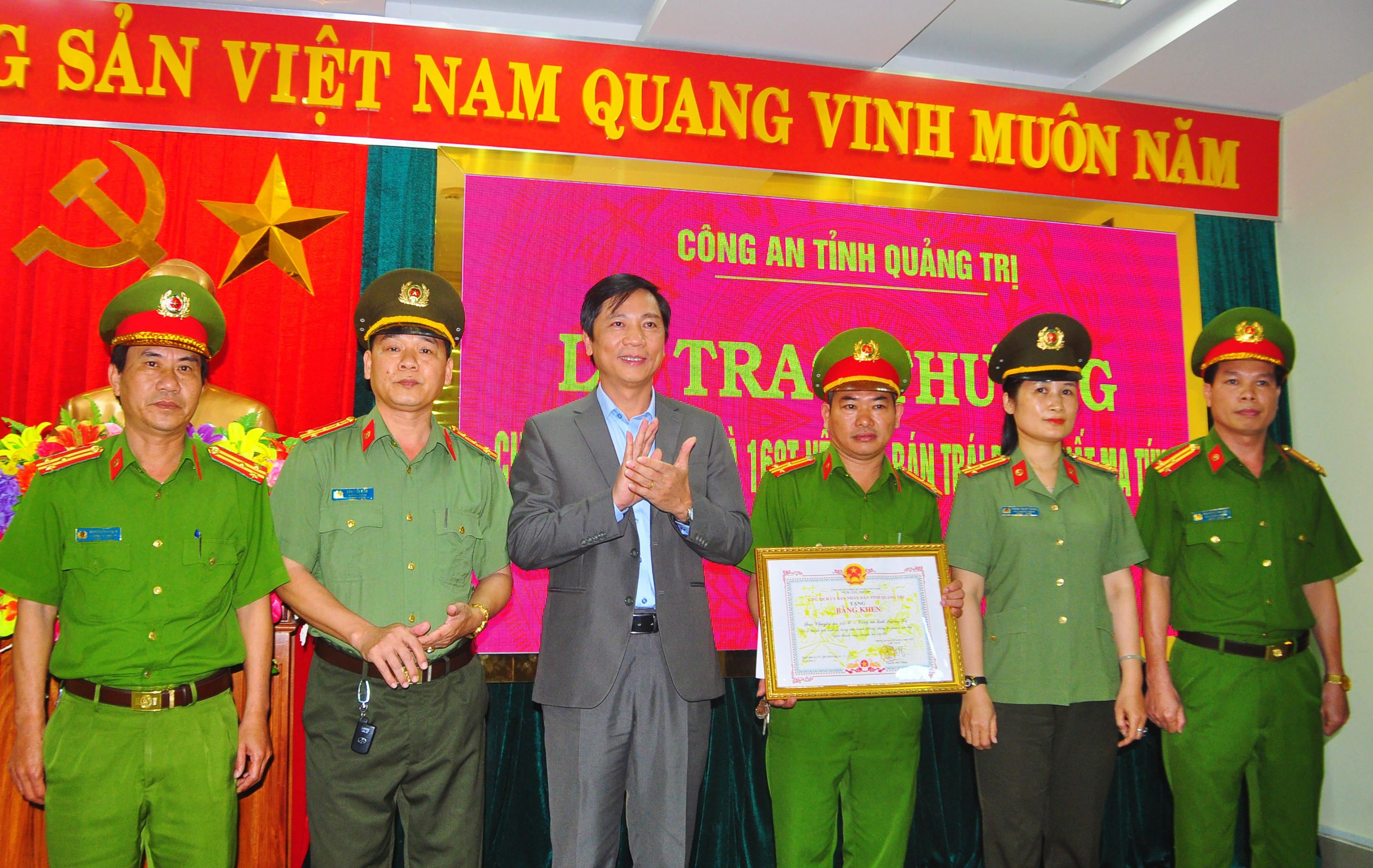 Đại tá Trần Đức Việt - Giám đốc Công an tỉnh Quảng Trị đã trao thưởng 10 triệu đồng cho mỗi Ban chuyên án; trao giấy khen cho 6 tập thể, 12 cá nhân thuộc các Ban chuyên án.