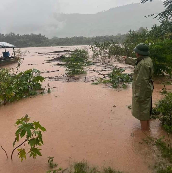 Tại huyện Hướng Hóa, mưa lũ đã gây ngập lụt, chia cắt tạm thời tại các ngầm, cầu tràn với mực nước ngập khoảng gần 1m.