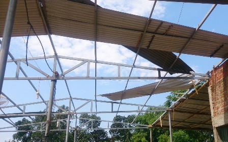 Cơn cuồng phong cũng cuốn phăng mái nhà xe của một trường học và làm sập đổ chợ trung tâm xã này, nhiều diện tích lúa đang chuẩn bị thu hoạch cũng bị ngã đổ, hư hại.