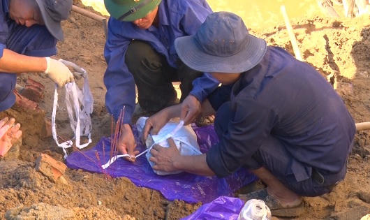 Nhận được tin báo, Bộ Chỉ huy quân sự tỉnh đã chỉ đạo Đội 584 khẩn trương huy động lực lượng, tiến hành khai quật, tìm kiếm.