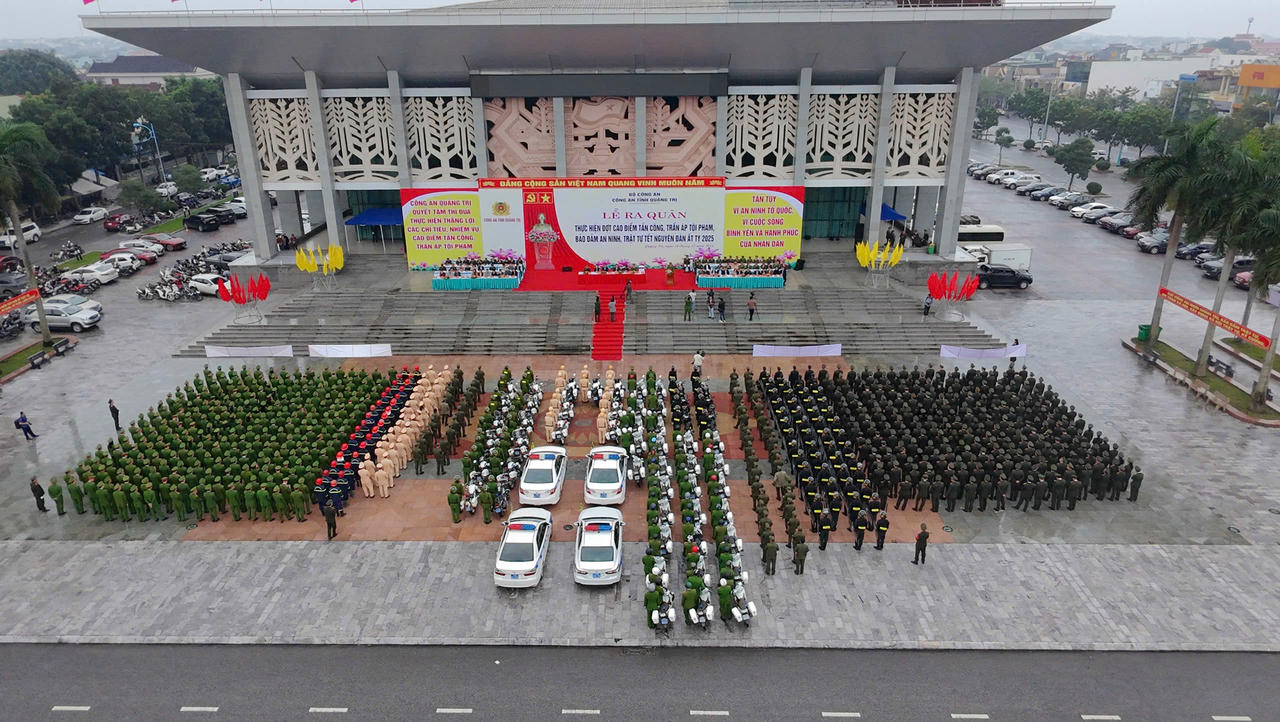 (PLVN) - Ngày 10/12, tại Trung tâm Văn hóa - Điện ảnh tỉnh, Công an tỉnh Quảng Trị tổ chức Lễ ra quân tấn công trấn áp tội phạm, bảo đảm an ninh, trật tự Tết Nguyên đán Ất Tỵ 2025.