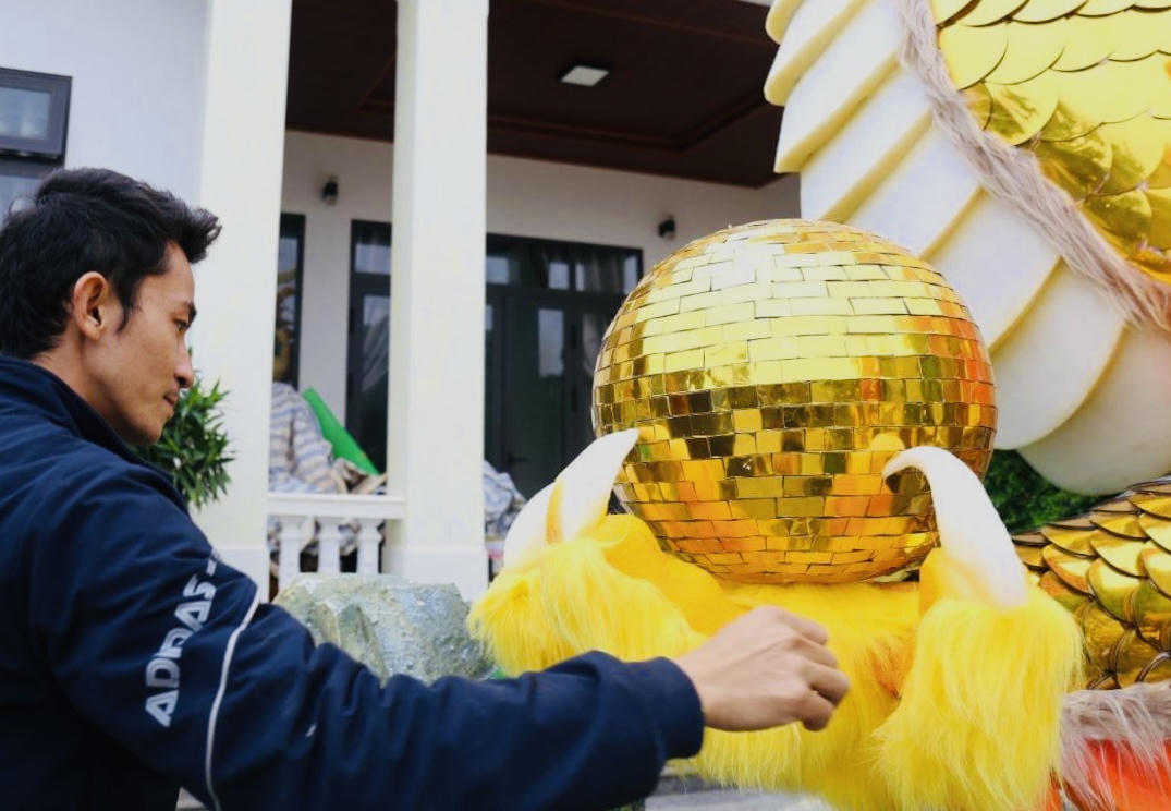 Linh vật rồng do anh Đinh Văn Tâm 33 tuổi, trú tại thôn An Trung Đồng, xã Triệu Độ, huyện Triệu Phong, tỉnh Quảng Trị) và các cộng sự làm trong thời gian khoảng 3 tháng.