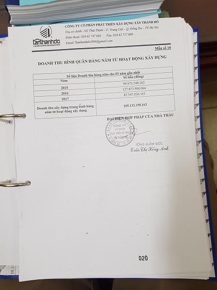 Công ty cổ phần xây dựng Thành Đô Thăng Long không đáp ứng năng lực tài chính và kinh nghiệm như doanh thu bình quân từ hoạt động xây dựng trong vòng 3 năm trở lại đây (2015, 2016, 2017) không đạt theo yêu cầu của HSMT 55 tỷ đồng.