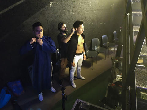 Hai anh em Quốc Cơ-Quốc Nghiệp cho biết họ khá bình tĩnh, không gặp nhiều áp lực dẫu biết tiết mục chồng đầu đi lên xuống bậc thang rất mạo hiểm.