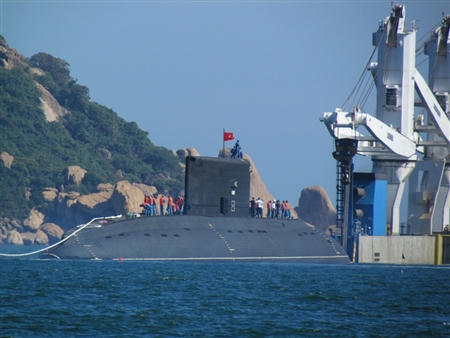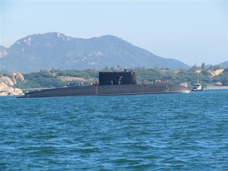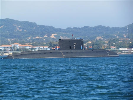 Quốc kỳ tung bay trên tàu ngầm Hà Nội tại quân cảng Cam Ranh