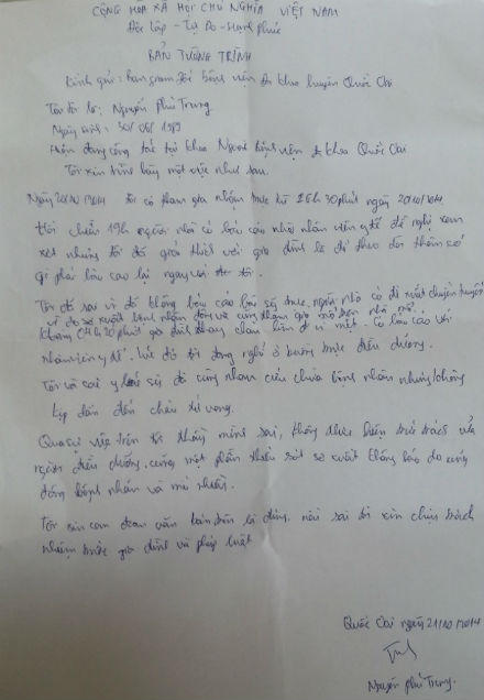 Ngay sau khi nắm bắt sự việc, Ban Giám đốc Bệnh viện Đa khoa Quốc Oai đã yêu cầu nhân viên y tế ca trực viết bản tường trình. Trong bản tường trình, điều dưỡng Nguyễn Phú Trung viết: