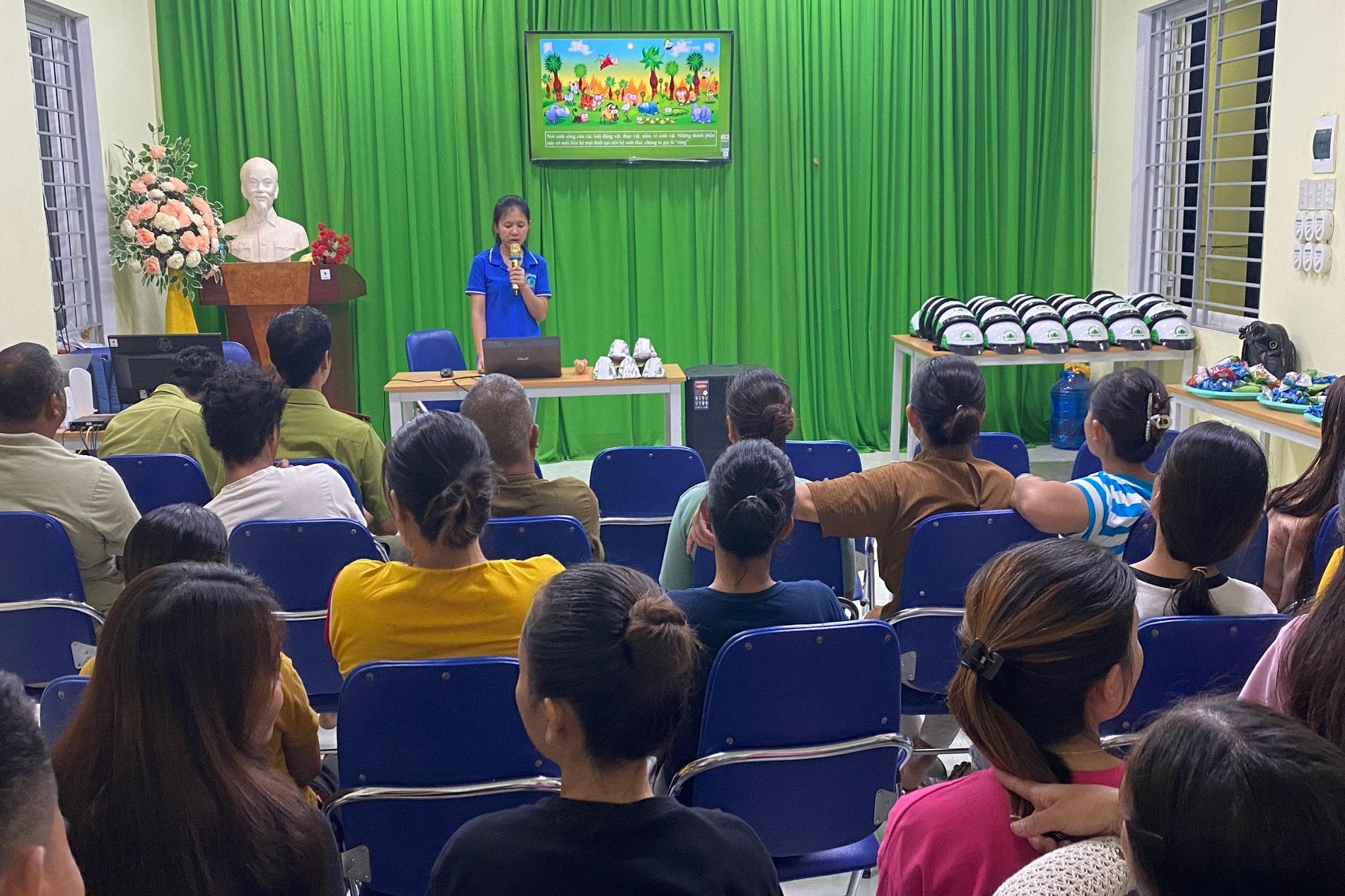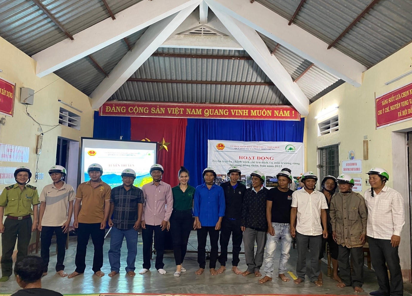 Cán bộ Quỹ Bảo vệ và Phát triển rừng tuyên truyền về chính sách chi trả DVMTR cho người dân tại các Nhà Cộng đồng thôn Pa Ring - Cân Sâm, xã Hồng Hạ, huyện A Lưới. |