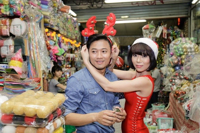 Thậm chí, Thúy Miêu còn phải lôi Quý Bình tới tiệm Ngàn Thông chỉ cho nam diễn viên biết người ta sắm đồ trang trí Noel ra sao, tự tay làm thiệp như thế nào, tại sao tự cắm sừng lên đầu chạy vòng vòng,…