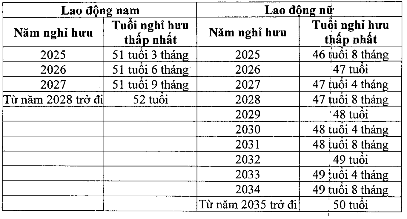 Lộ trình điều chỉnh tuổi nghỉ hưu của người lao động được thực hiện như sau:
