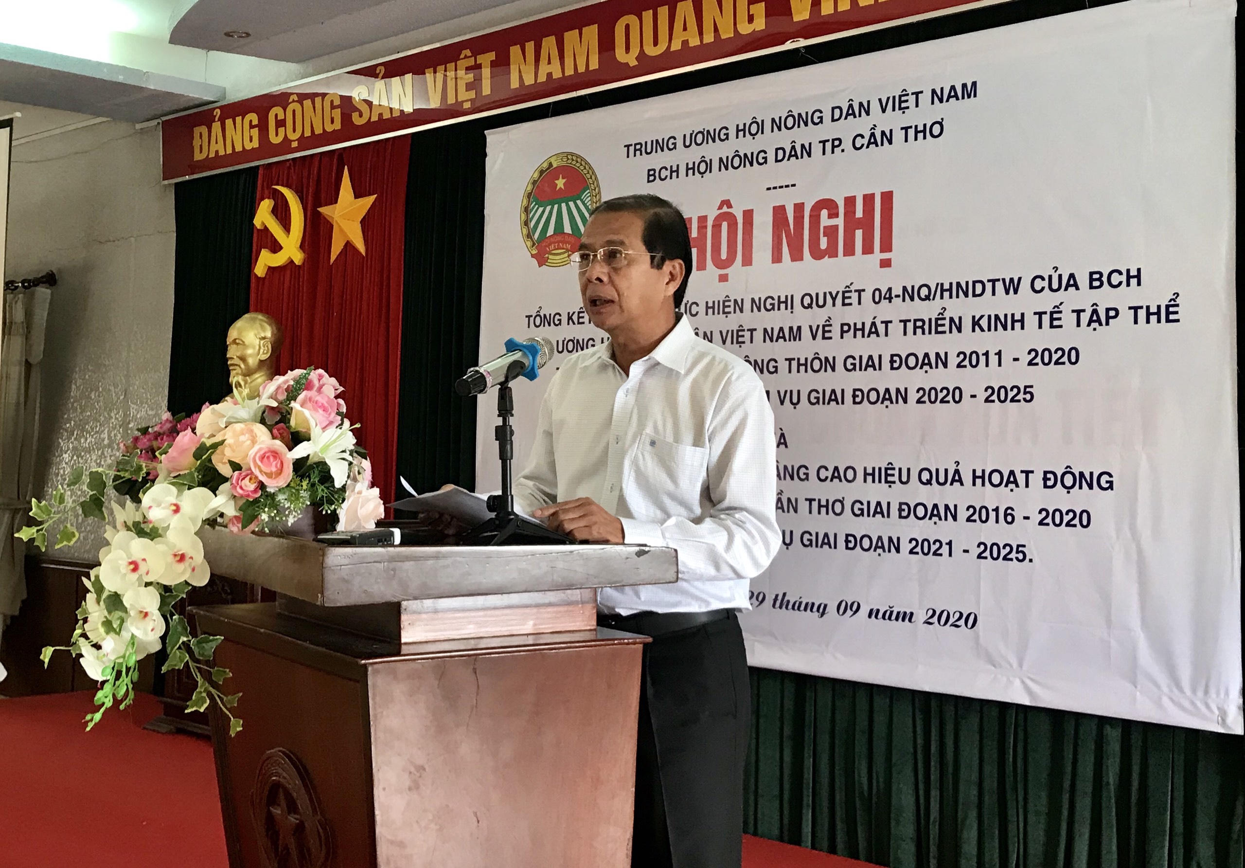 (PLVN) - Sáng 29/9, Hội nông dân (HND) TP Cần Thơ tổ chức Hội nghị tổng kết 10 năm thực hiện nghị quyết 04-NQ/HNDTW về phát triển kinh tế tập thể trong nông nghiệp, nông thôn giai đoạn 2011 – 2020. Đồng thời tổng kết 5 năm thực hiện Đề án “Đổi mới và nâng cao hoạt động của Quỹ Hỗ trợ nông dân” giai đoạn 2016 – 2020 và đề ra phương hướng, nhiệm vụ giai đoạn 2021 – 2025.