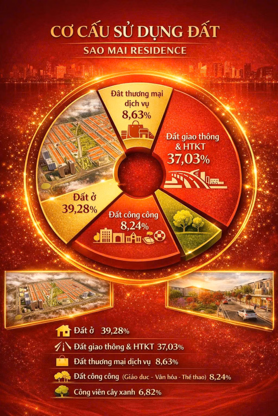 Đất ở chiếm 39,28% – đảm bảo mật độ xây dựng hợp lý.