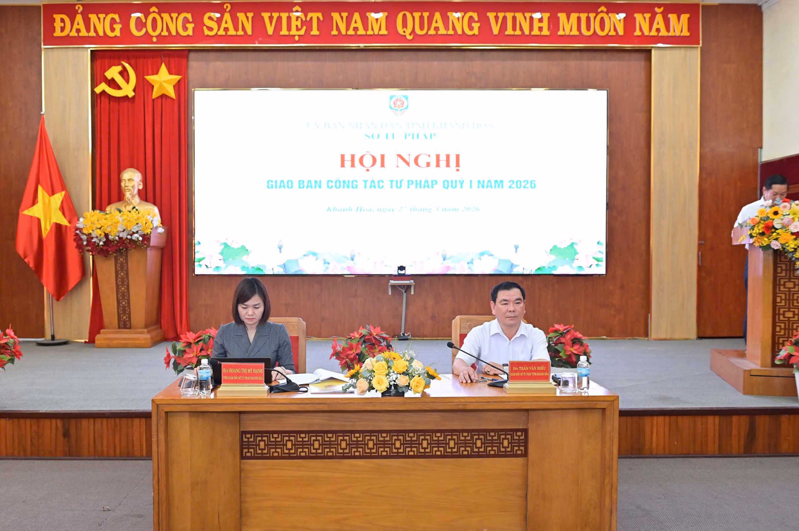 Sáng 27/3, Sở Tư pháp tỉnh Khánh Hòa tổ chức Hội nghị giao ban công tác tư pháp Quý I/2026. Bám sát chương trình công tác của Bộ Tư pháp và UBND tỉnh, toàn ngành đã chủ động đổi mới phương thức lãnh đạo, phát huy vai trò người đứng đầu và đẩy mạnh chuyển đổi số, cải cách hành chính trong các lĩnh vực quản lý nhà nước.
