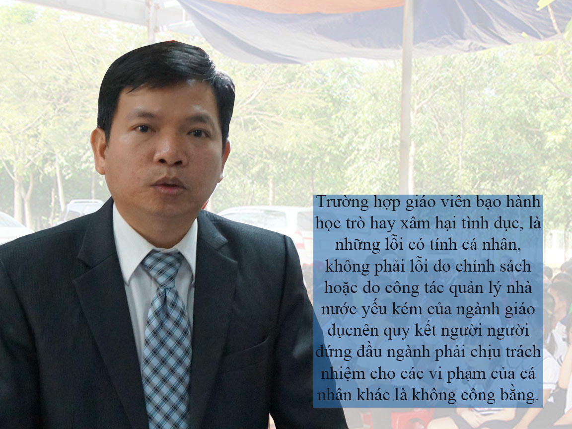 Tương tự như vậy, trường hợp giáo viên bạo hành học trò hay xâm hại tình dục, là những lỗi có tính cá nhân, không phải lỗi do chính sách hoặc do công tác quản lý nhà nước yếu kém của ngành giáo dục. Do vậy, nếu quy kết người người đứng đầu ngành phải chịu trách nhiệm cho các vi phạm của cá nhân khác là không công bằng.