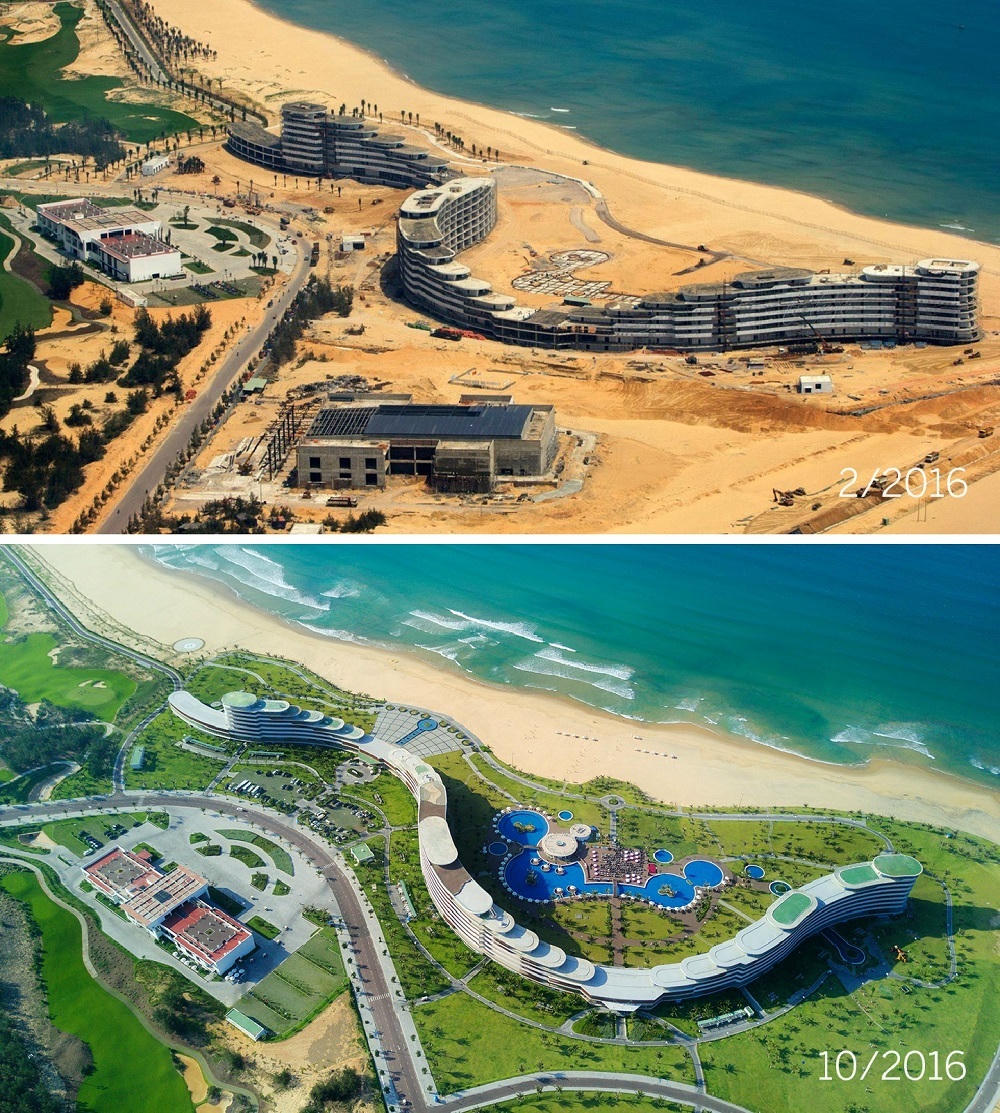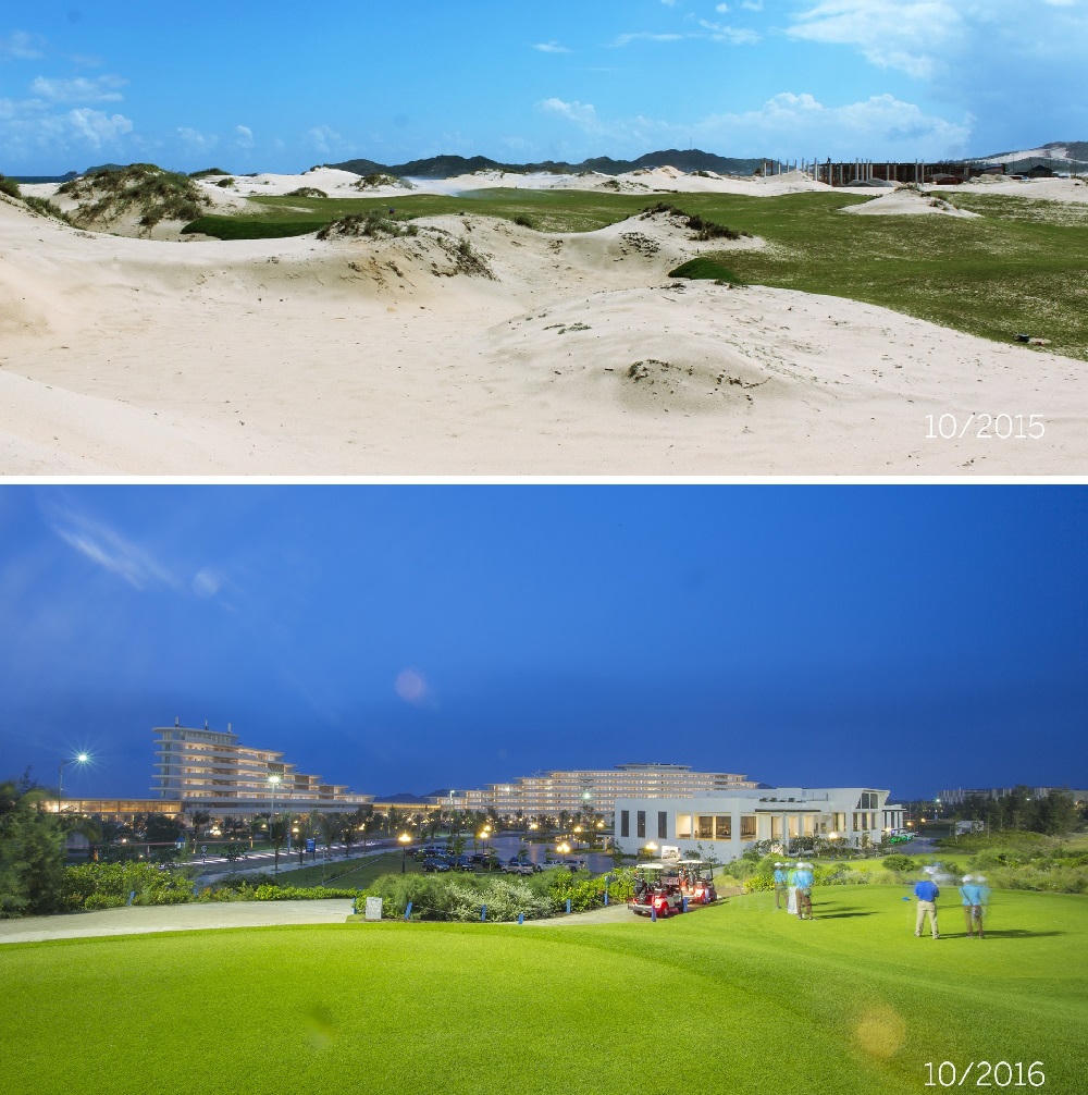 Viên ngọc biển này được tạo ra từ 4.000 kỹ sư, công nhân và các chuyên gia nước ngoài làm việc ròng rã trong nhiều tháng trời, dưới sự túc trực chỉ huy luân phiên cả ngày lẫn đêm của toàn bộ lãnh đạo cấp cao Tập đoàn FLC. Chỉ trong 11 tháng, một đại dự án có tổng vốn đầu tư 7.000 tỷ đã hoàn thành trong sự bất ngờ của lãnh đạo, chính quyền địa phương. Trước đó, các nhà đầu tư đã đến rồi đi, để lại hàng loạt công trình dang dở khiến tỉnh buộc phải thu hồi chứng nhận đầu tư trong nhiều năm.
