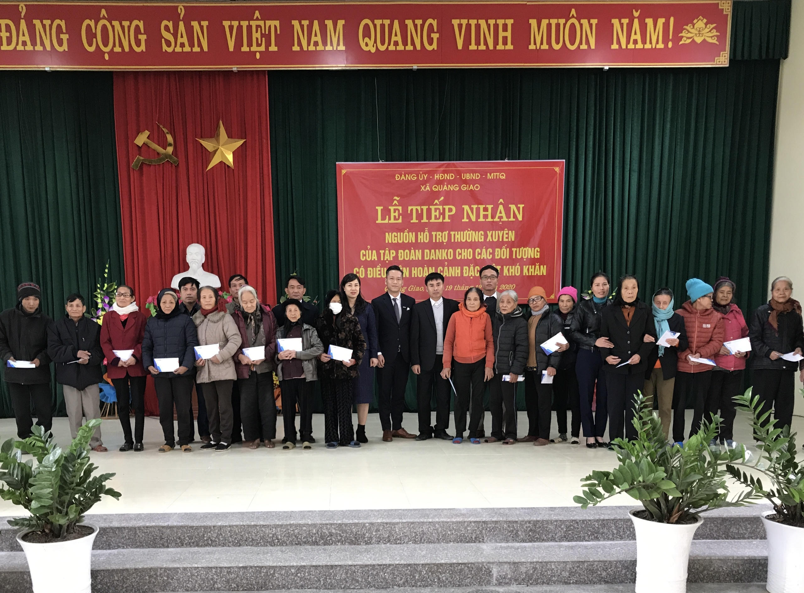 (PLVN) - Ngày 19/12/2020, Quỹ "Trái tim Danko" đã trao hỗ trợ thường xuyên cho 20 người có hoàn cảnh đặc biệt khó khăn xã Quảng Giao, huyện Quảng Xương, tỉnh Thanh Hoá. Tổng giá trị hỗ trợ thường xuyên năm 2020 là 240 triệu đồng.