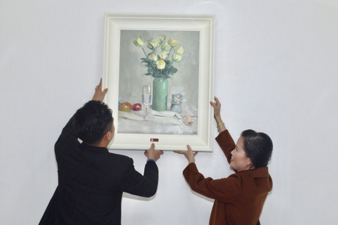 Họa sĩ Kim Đức treo tranh tặng Bệnh viện Xanh Pôn