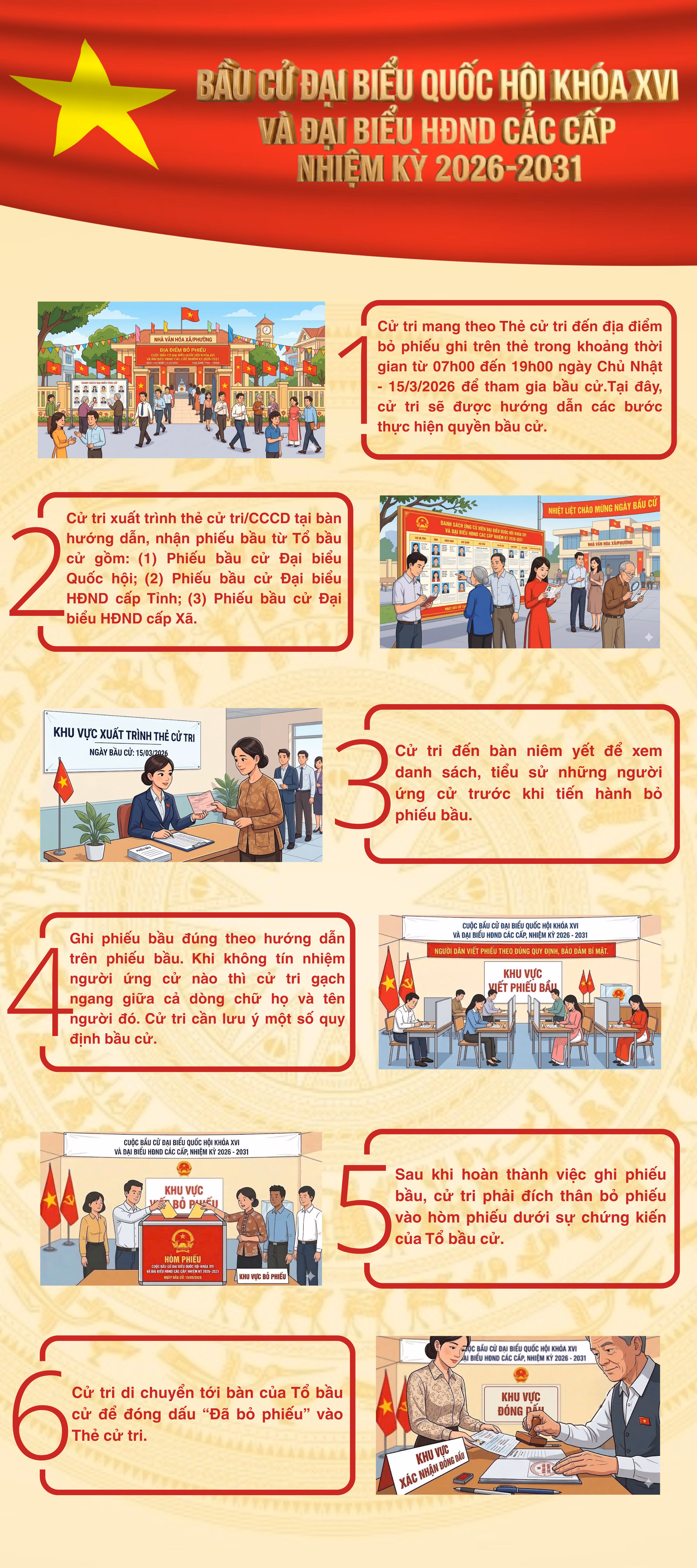 Quy trình bỏ phiếu bầu cử đại biểu Quốc hội khóa XVI và đại biểu HĐND các cấp nhiệm kỳ 2026 - 2031