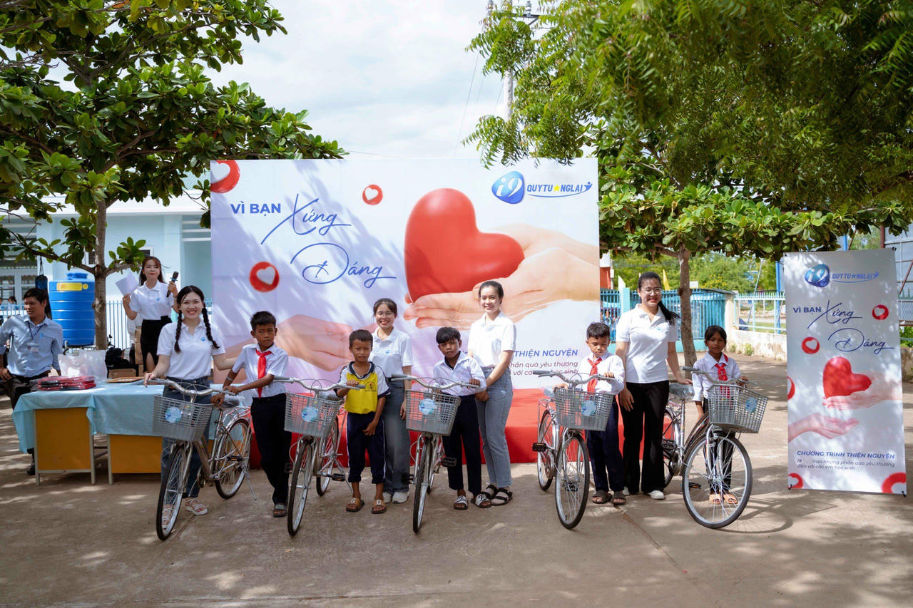 Quỹ tương lai i9 đã trích ra những phần quà nhỏ là những chiếc xe đạp dành tặng cho 10 em học sinh có trường hợp đặc biệt khó khăn. |