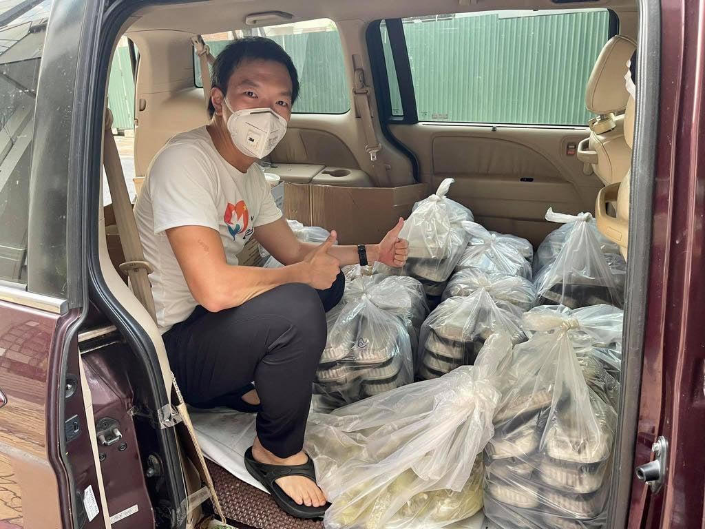 Sau khi khỏi bệnh, Anh Tài tình nguyện đi phát cơm từ thiện trả ơn đội ngũ chống dịch. |