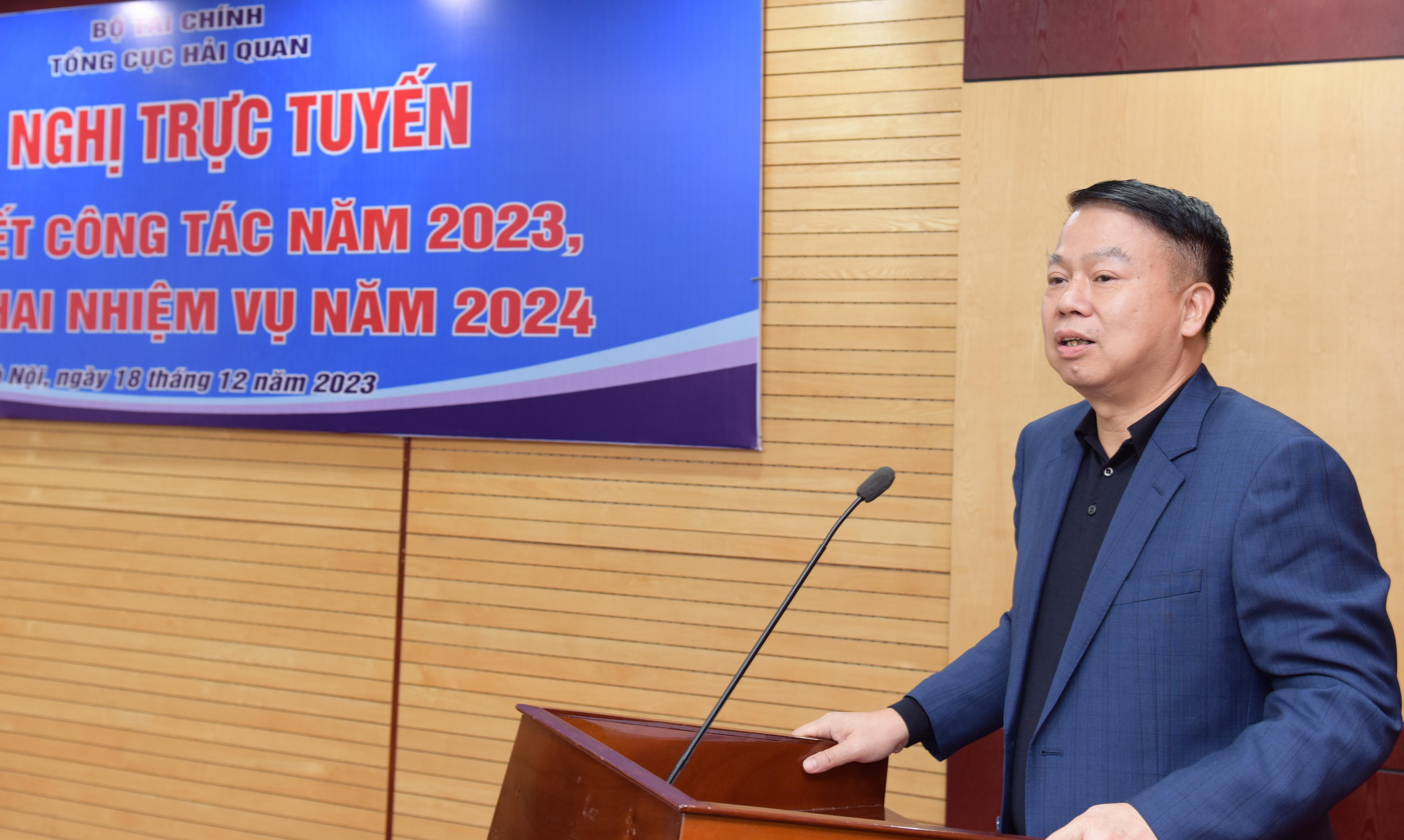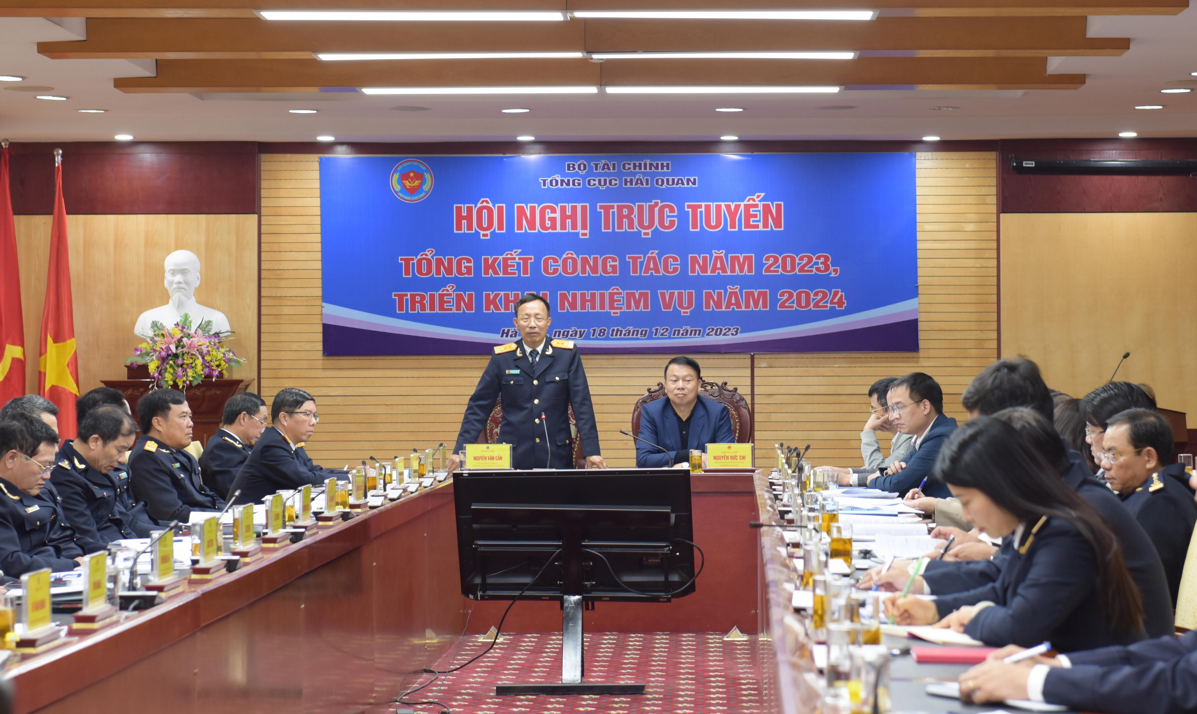 Chiều 18/12, Tổng cục Hải quan tổ chức Hội nghị trực tuyến tổng kết công tác năm 2023, triển khai phương hướng nhiệm vụ năm 2024. Thứ trưởng Bộ Tài chính Nguyễn Đức Chi dự và chỉ đạo Hội nghị. Tổng cục trưởng Tổng cục Hải quan Nguyễn Văn Cẩn chủ trì Hội nghị.