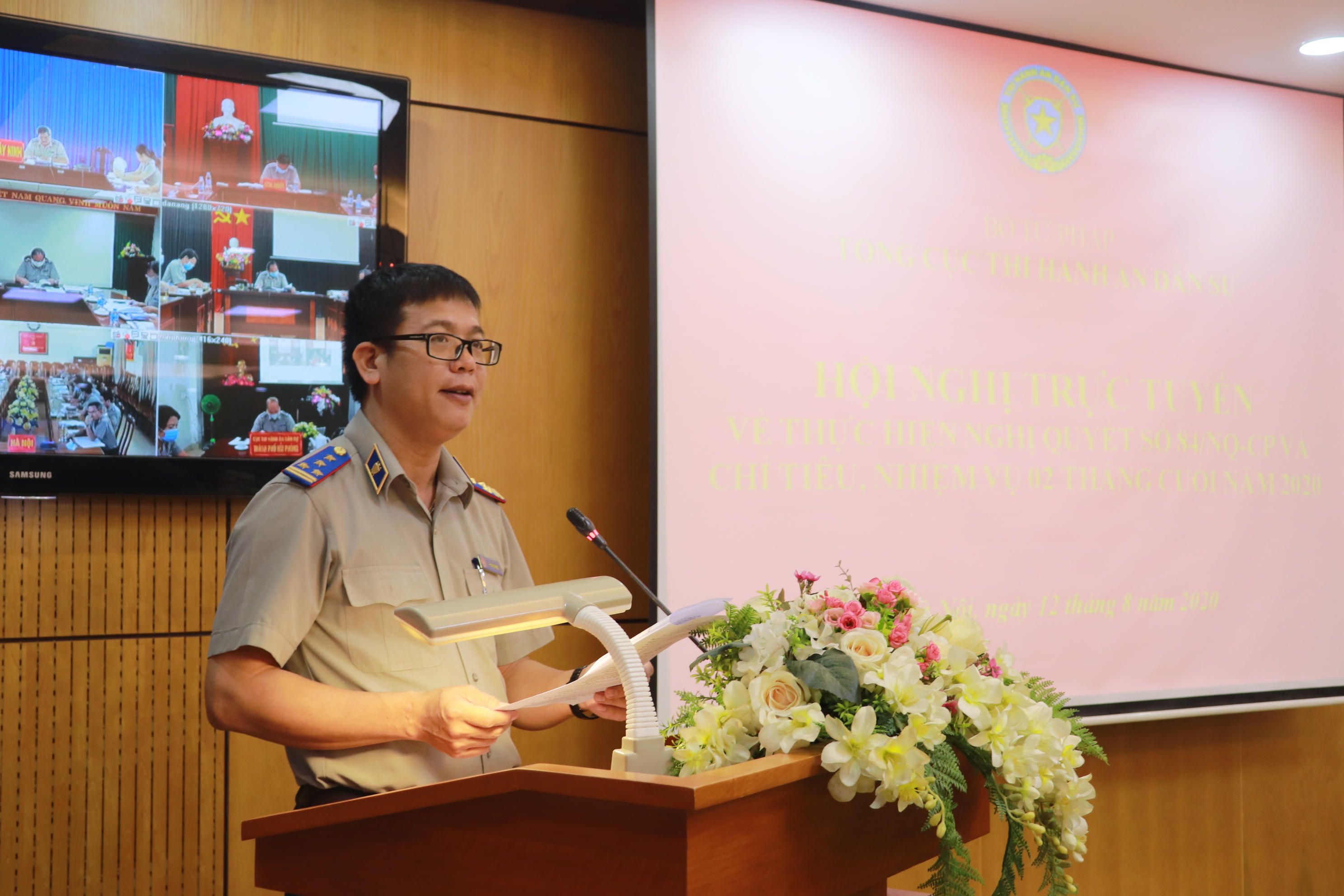 (PLVN) -Đây là yêu cầu của Thứ trưởng Bộ Tư pháp Mai Lương Khôi tại Hội nghị trực tuyến về thực hiện Nghị quyết số 84/NQ-CP ngày 29/5/2020 của Chính phủ và chỉ tiêu, nhiệm vụ năm 2020. Tổng cục trưởng Nguyễn Quang Thái, Phó Tổng cục trưởng Nguyễn Văn Lực và lãnh đạo các đơn vị thuộc Tổng cục cùng tham dự.