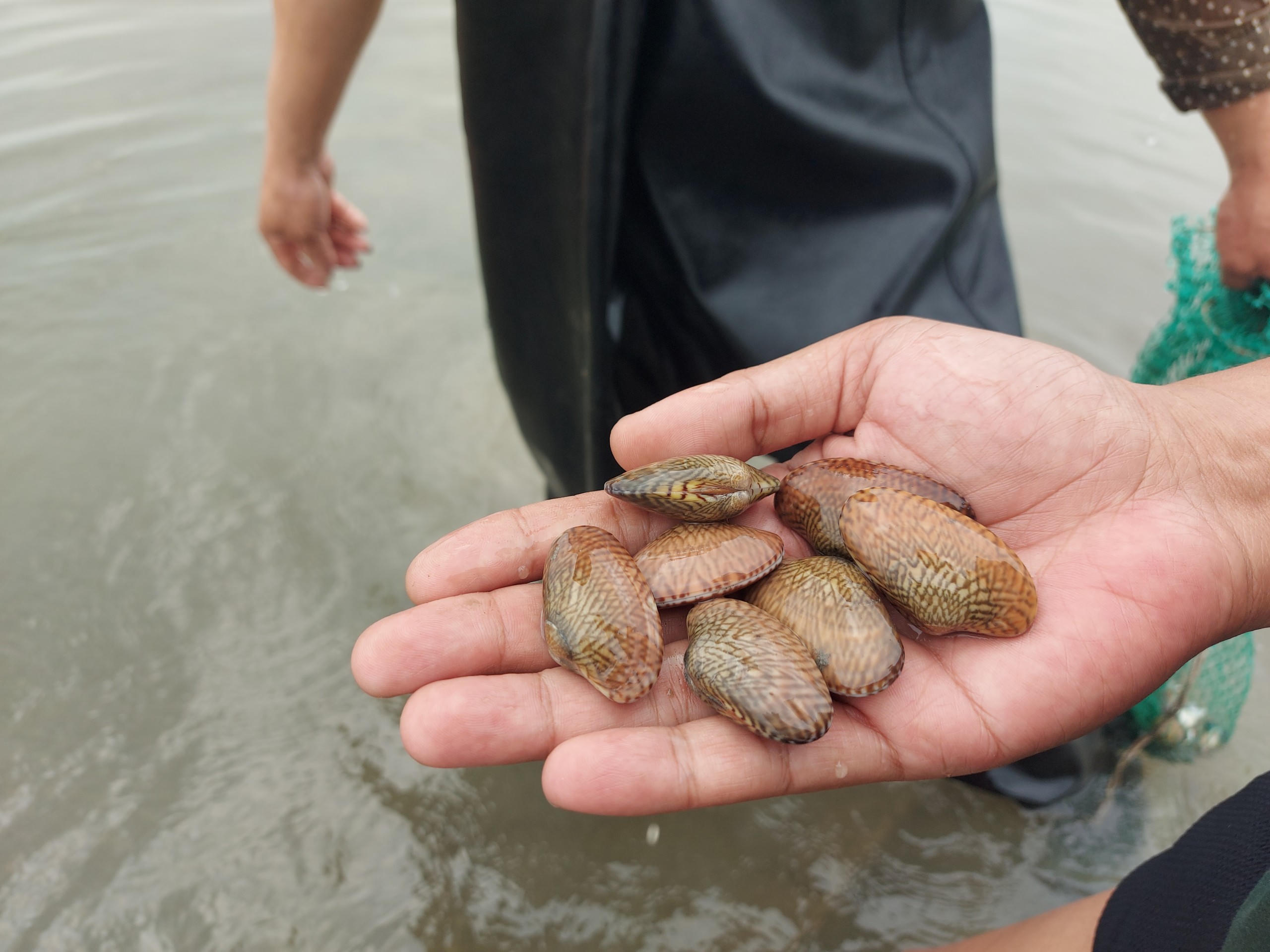 | Ngao hoa, nhuyễn thể hai mảnh vỏ có giá trị kinh tế cao đang được người dân thả nuôi ồ ạt. Ảnh: Quang Hà |