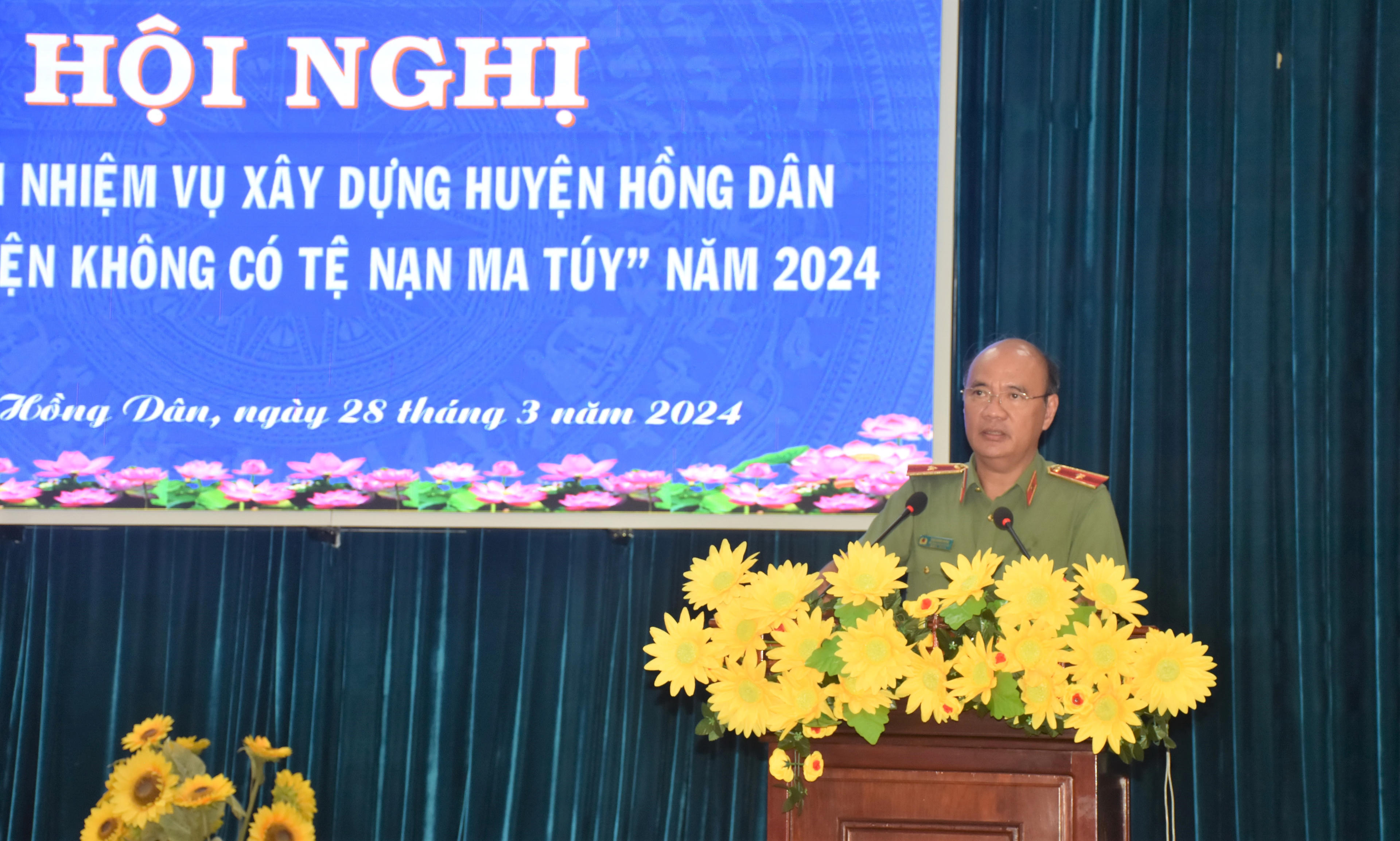 Phát biểu tại Hội nghị, Thiếu tướng Cao Đăng Hưng - Phó Chánh Văn phòng Bộ Công an đánh giá tình hình tệ nạn ma túy trên địa bàn cả nước trong thời gian qua tiếp tục diễn biến phức tạp, việc xây dựng huyện Hồng Dân thành “Huyện không có tệ nạn ma túy” trong năm 2024 là một nhiệm vụ hết sức khó khăn, đòi hỏi sự nỗ lực, quyết tâm rất lớn của Đảng bộ, chính quyền và Nhân dân toàn huyện.