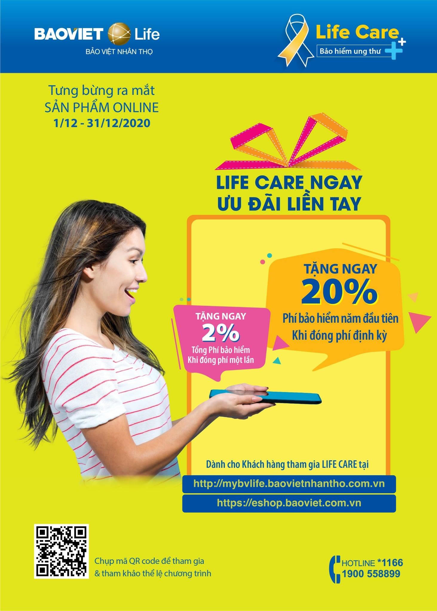 Tiếp tục thúc đẩy tinh thần sống chủ động, tháng 12/2020, Bảo Việt Nhân thọ đã cho ra mắt sản phẩm online ưu việt Life Care – Bảo hiểm bệnh Ung thư tích hợp Đột quỵ duy nhất trên thị trường, mang đến giải pháp tài chính chủ động và chu toàn, lan tỏa thông điệp ý nghĩa "Ung thư không phải để sợ, mà để hành động". Sản phẩm dễ dàng tham gia, có mức phí thấp, bảo vệ ngay từ giai đoạn đầu và bảo hiểm lên đến 122% số tiền bảo hiểm, mức chi trả cao nhất trên thị trường hiện nay.