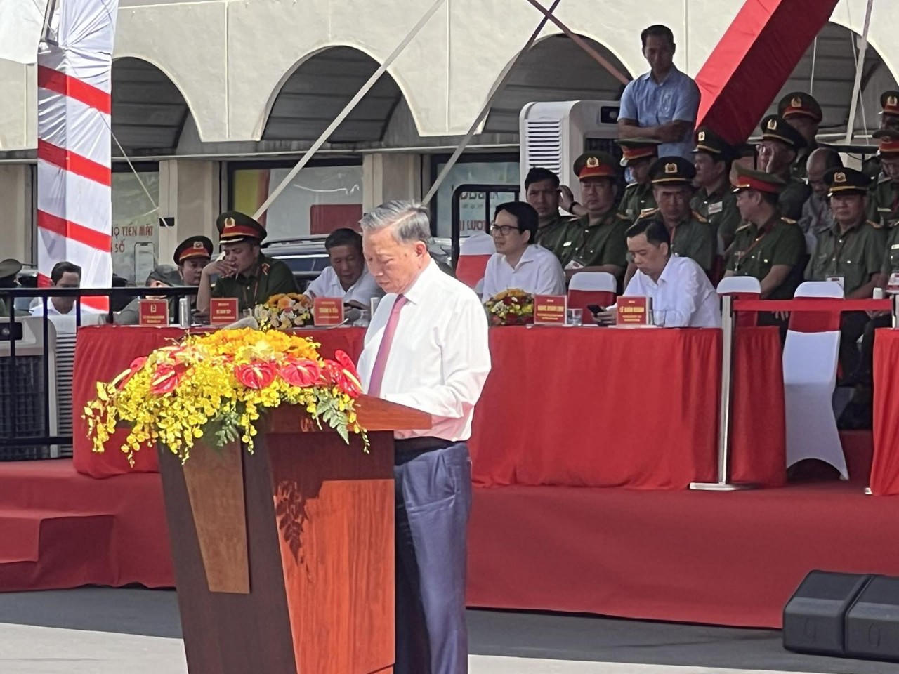 Chủ tịch nước Tô Lâm dự Lễ ra mắt Lực lượng tham gia bảo vệ an ninh trật tự ở cơ sở tại Thành phố Hồ Chí Minh. Cùng dự buổi lễ có Chủ tịch UBND TP HCM Phan Văn Mãi; Phó Chủ tịch UBND TP HCM Dương Ngọc Hải; Trung tướng Lê Hồng Nam - Giám đốc Công an TP HCM cùng lãnh đạo các bộ, ngành trung ương, các cục nghiệp vụ Bộ Công an; lãnh đạo UBND, công an các tỉnh, thành…