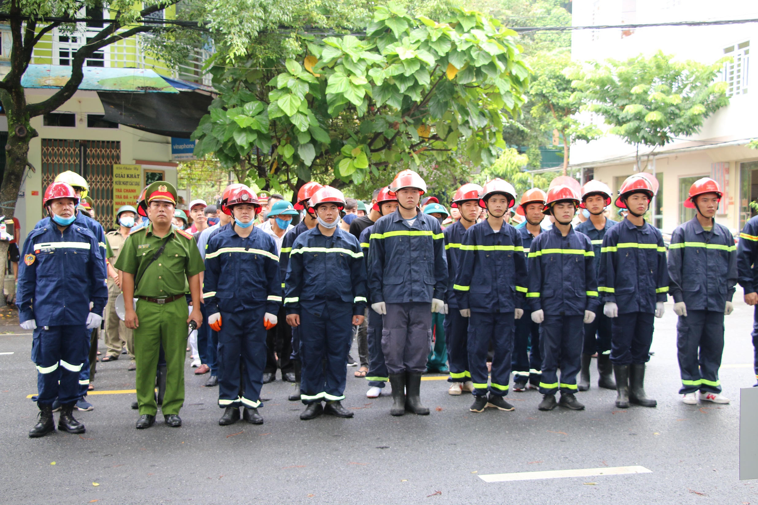 Cùng với đó, các lực lượng đã tham gia diễn tập thực binh phương án chữa cháy, CNCH, với tình huống giả định đặt ra là xuất hiện đám cháy tại nhà một hộ dân tại phố Châu Úy. Đám cháy bốc khói nghi ngút, khí độc tỏa ra dày đặc đe dọa đến tính mạng nhiều người trong nhà và các hộ lân cận.