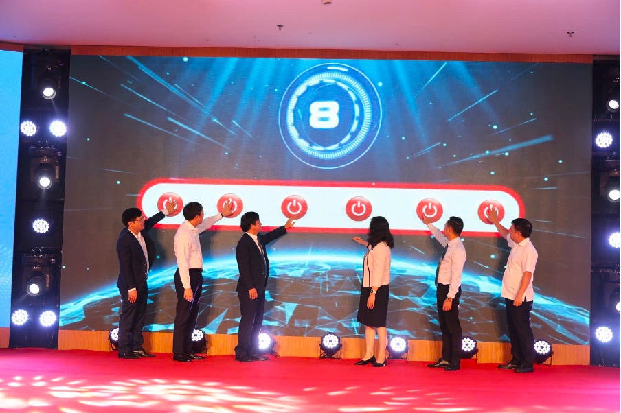 Nghi thức bấm nút ra mắt Tạp chí Pháp luật và Phát triển điện tử. |