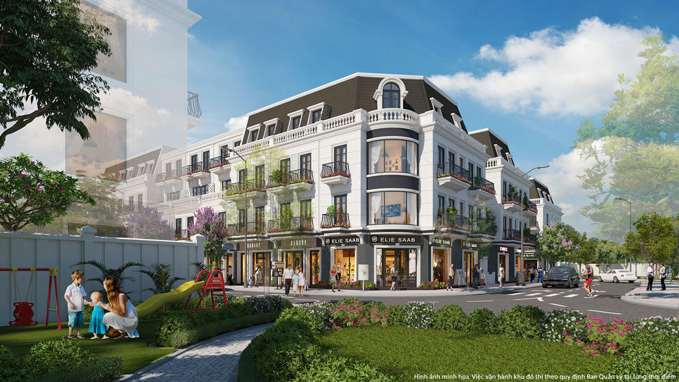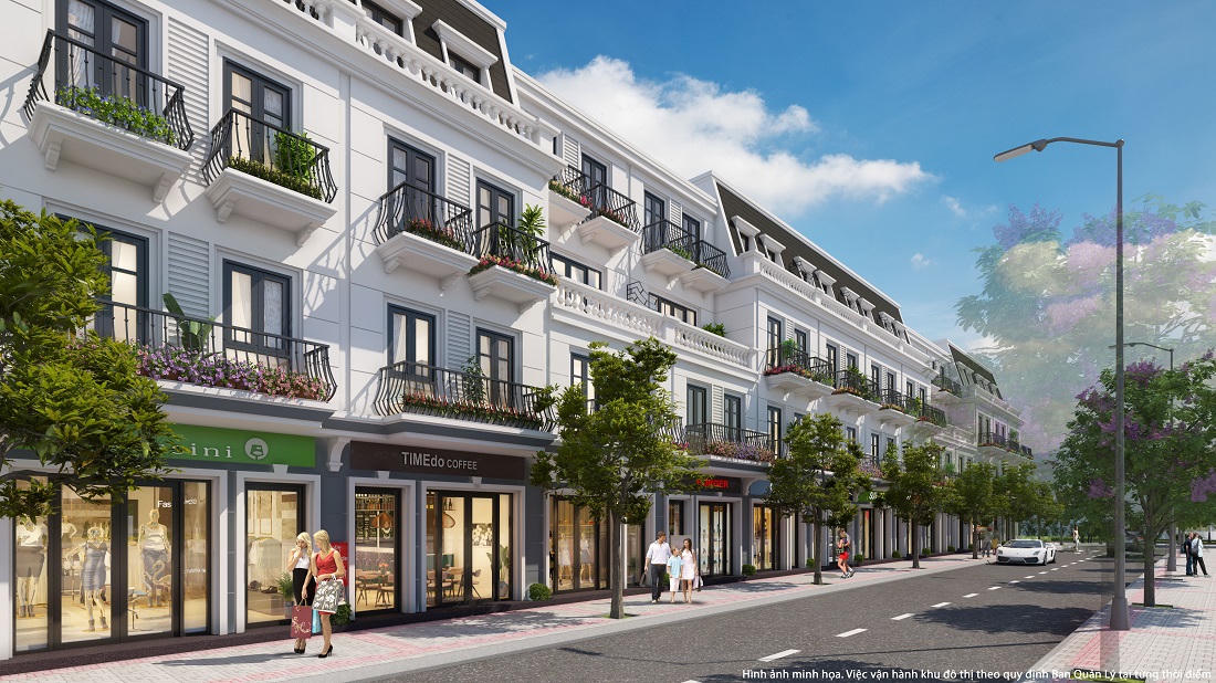 Tầng 1 của các căn Shophouse được thiết kế mặt tiền rộng, không gian đặc biệt thích hợp phục vụ cho việc kinh doanh đa lĩnh vực, dịch vụ. Kiến trúc bên ngoài sở hữu những đường nét cổ điển, sang trọng tạo nên ưu thế nổi bật cho các cơ sở kinh doanh, thương mại tại đây. Trong khi đó, tầng lầu phía trên là nơi an cư đẳng cấp cho cả gia đình, bao gồm khu vực sinh hoạt chung và không gian riêng tư cho từng thành viên.
