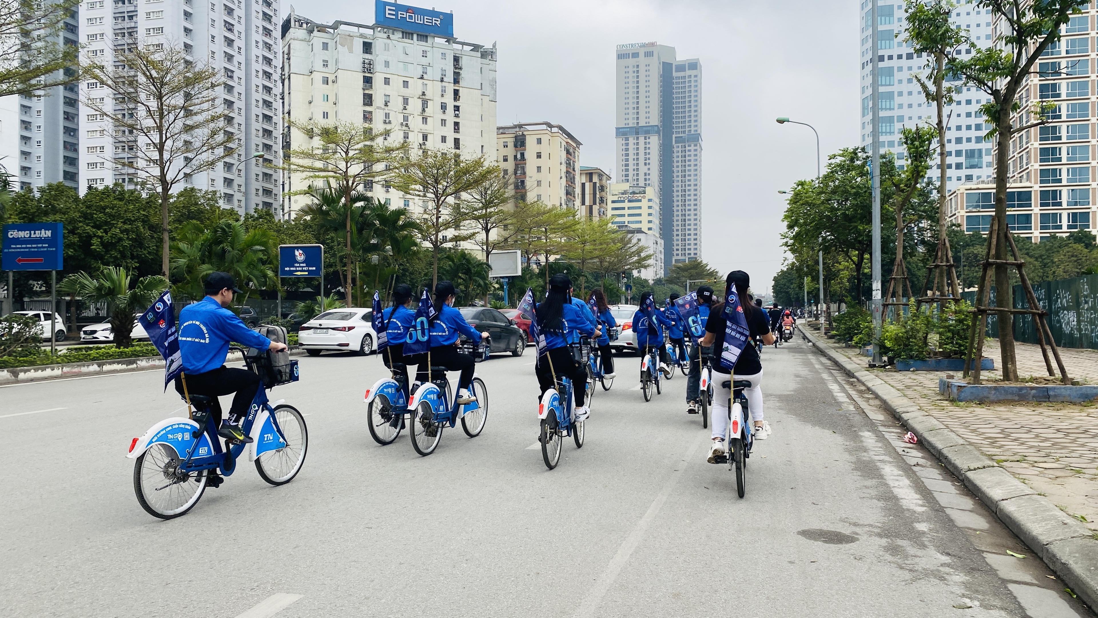 Các đoàn viên thanh niên tham gia đạp xe hưởng ứng Chiến dịch Giờ Trái đất năm 2024. |