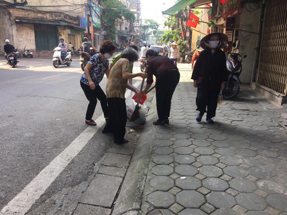 Người dân phường Cống Vị dọn dẹp, đảm bảo vệ sinh môi trường trước dịp lễ
