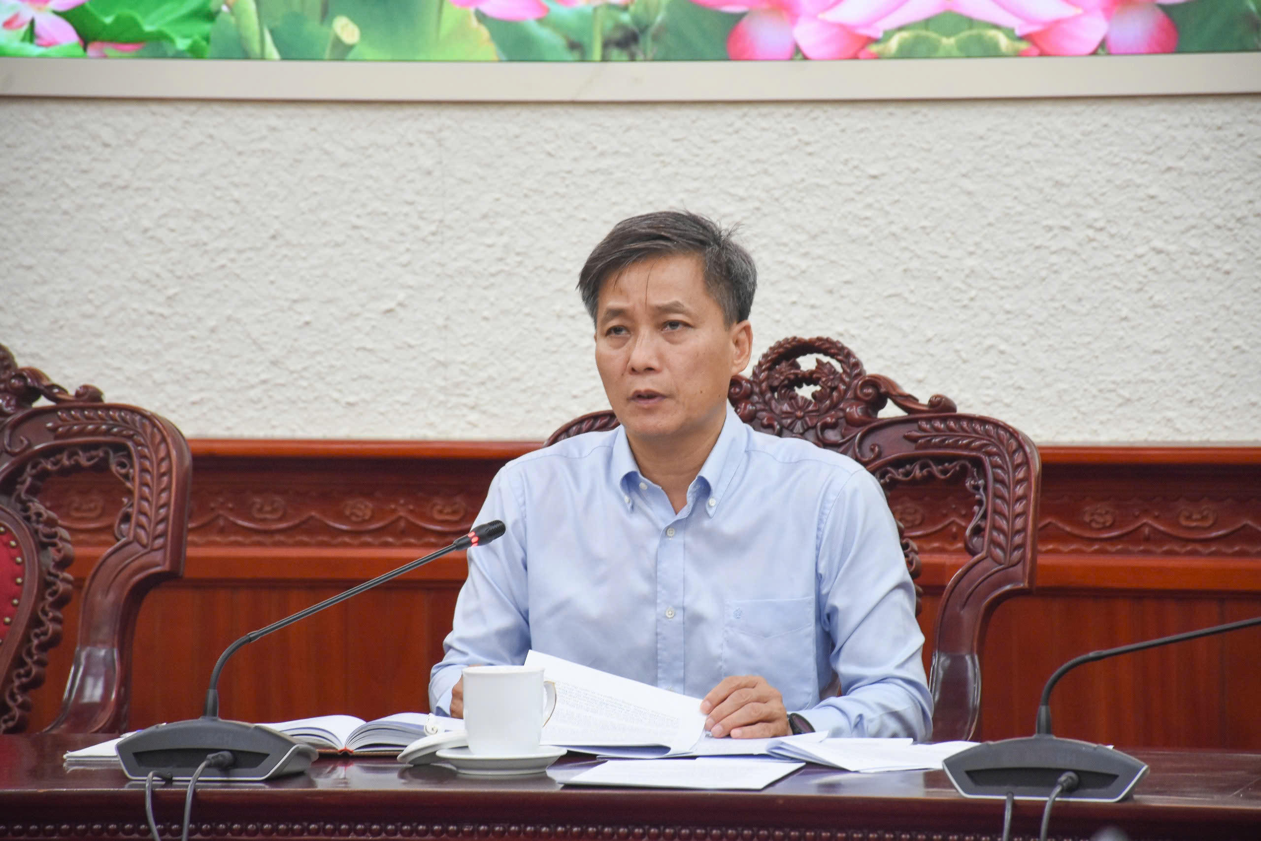 Chánh Văn phòng Bộ Tư pháp Đỗ Xuân Quý góp ý tại buổi làm việc. |