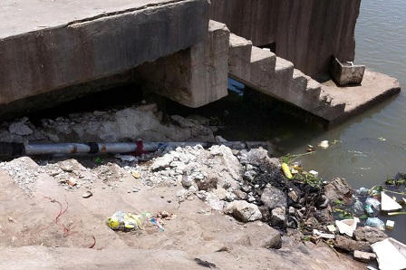 Xuôi theo con nước, cách khu bến thuyền chừng 1km, chính là nơi chất chứa rác thải. Rác thải xả xuống bờ sông khiến cho mùi hôi thối bốc lên nồng nặc, nhất là trời nóng ẩm. Theo như ghi nhận của phóng viên, cách đoạn sông này khoảng 500 mét là chợ cá của xã Diễn Ngọc. Do đây là khu chợ thủy sản nên rác thải được tập kết, rồi đổ xuống bờ sông, gây ô nhiễm, ảnh hưởng đến khu vực, mĩ quan của bờ sông.