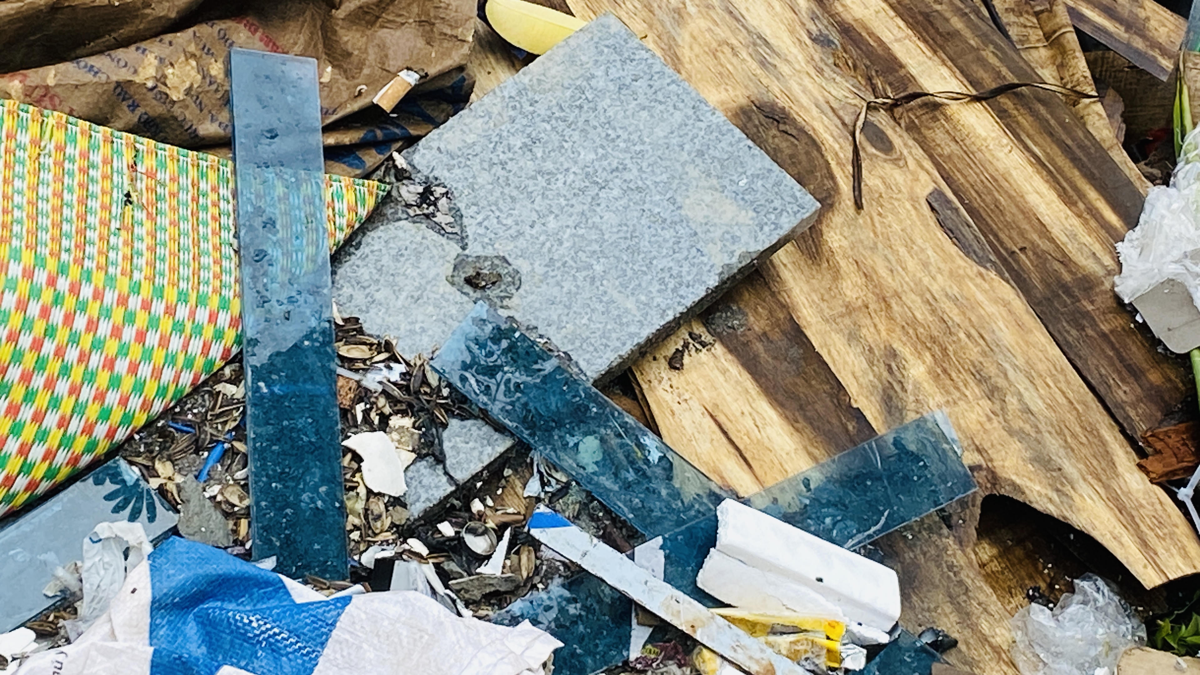 ... mảnh kính vỡ đều được "tập kết" ở đây.