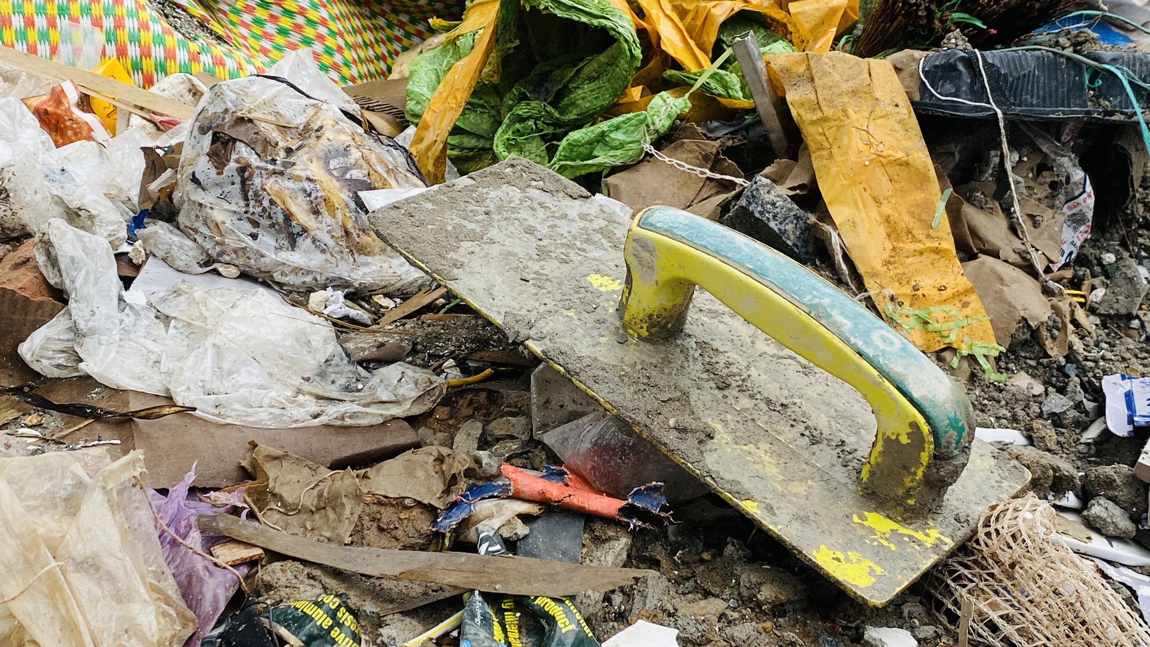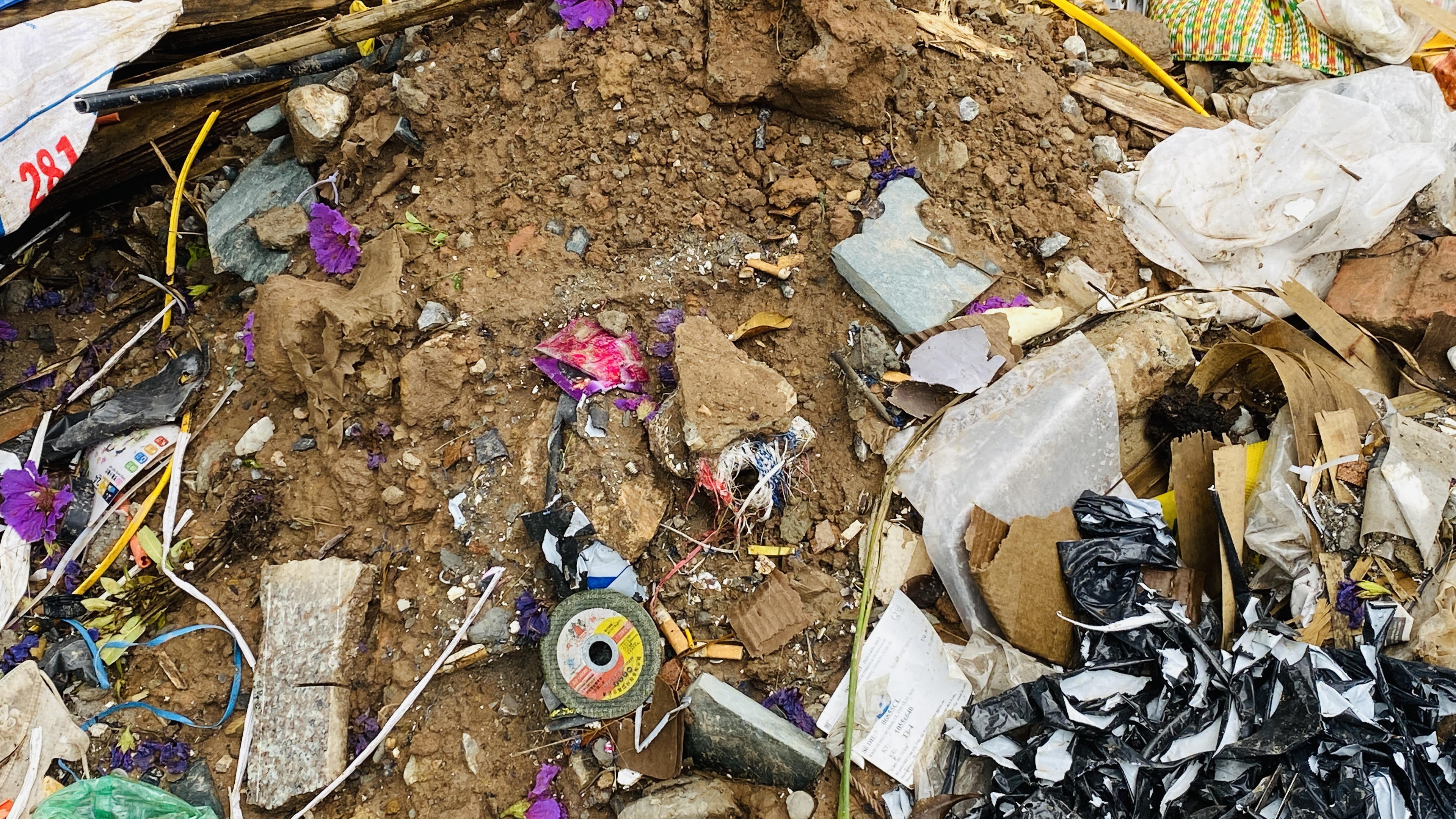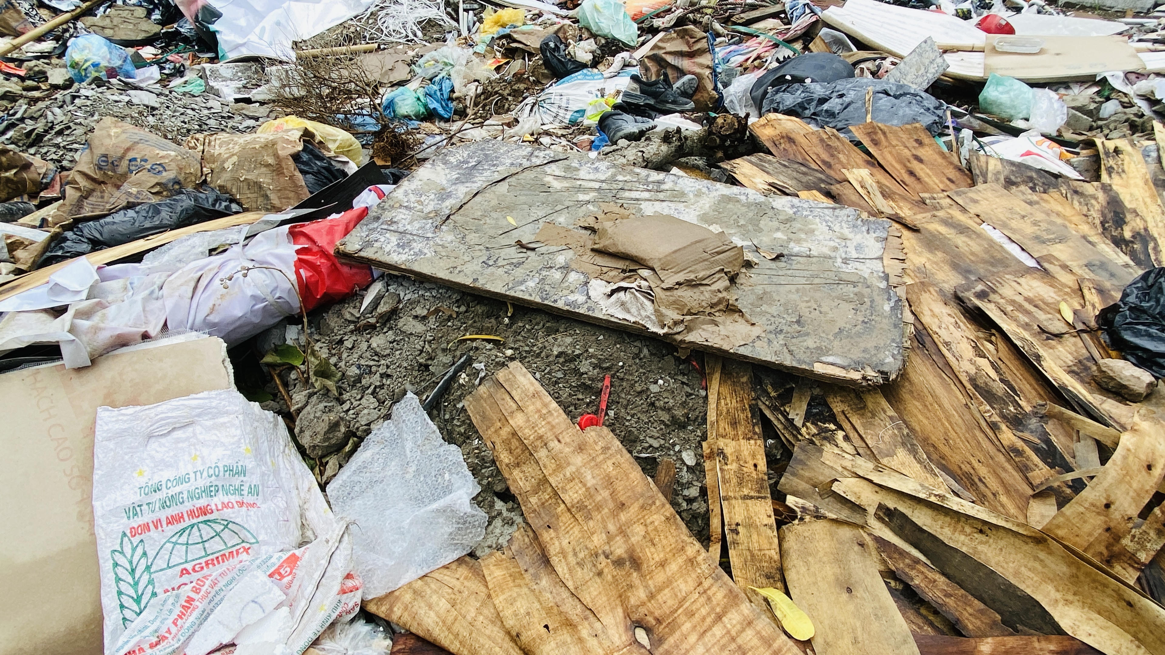 Các sản phẩm thừa trong quá trình xây dựng vứt ngổn ngang.