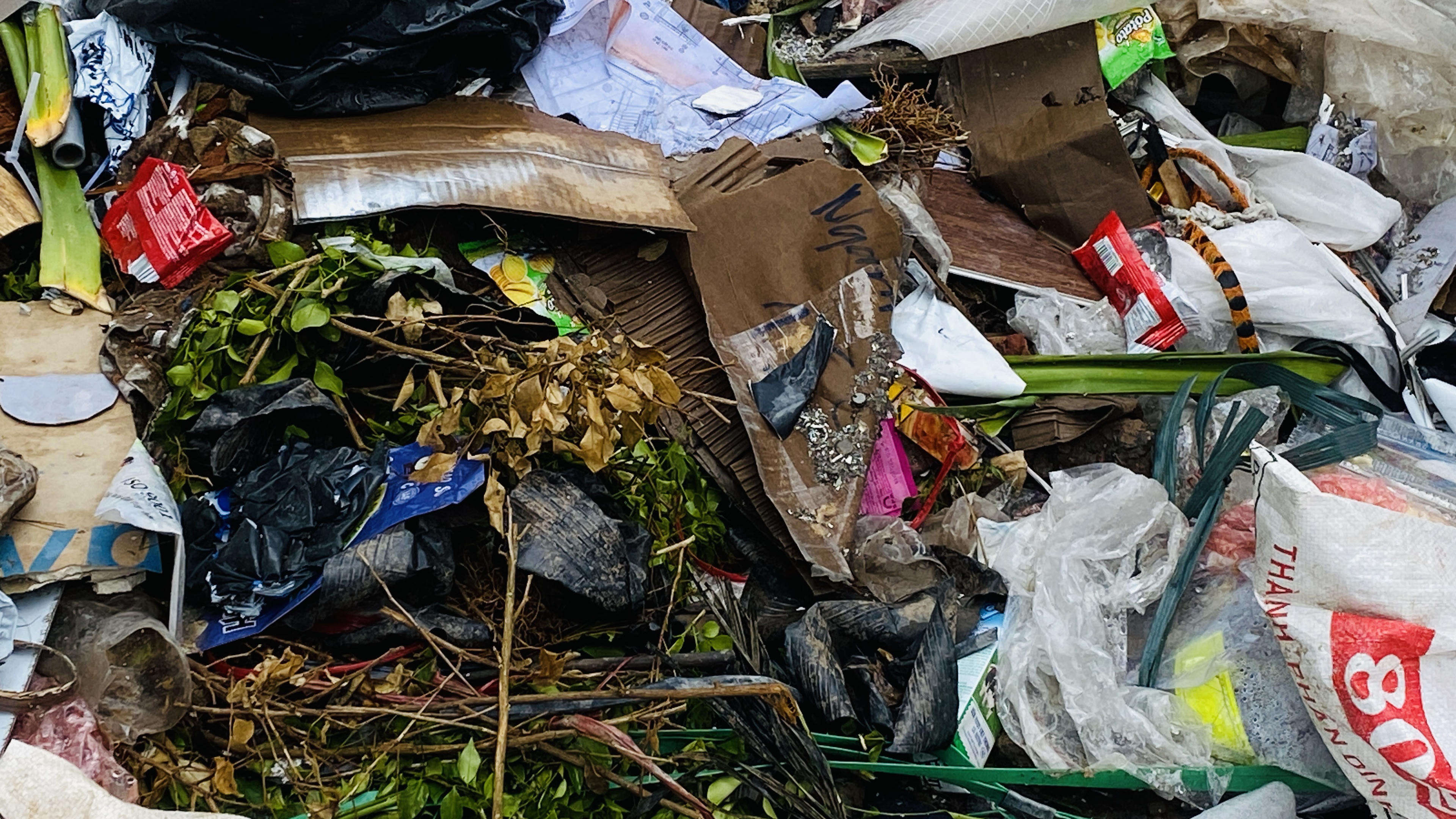 Rác thải chất đống trên vỉa hè đường Tôn Thất Thuyết, quận Cầu Giấy
