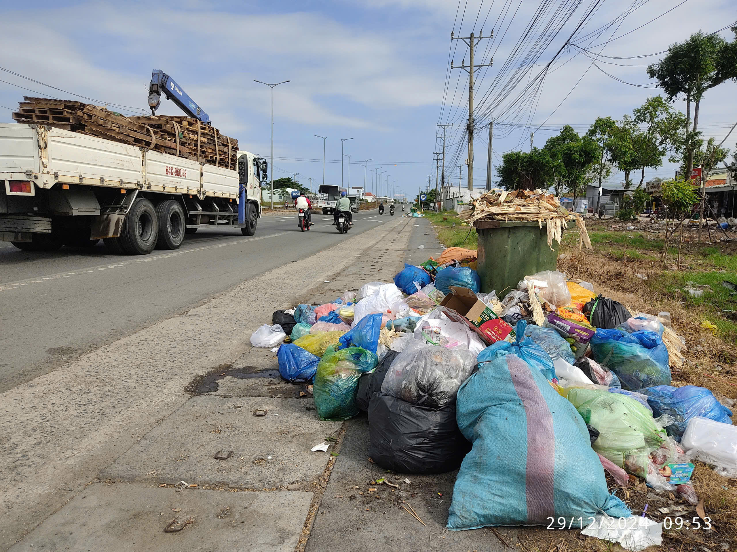 Rác thải chưa được giải quyết dứt điểm, chất đống bên đường ở Long Hồ (Vĩnh Long)