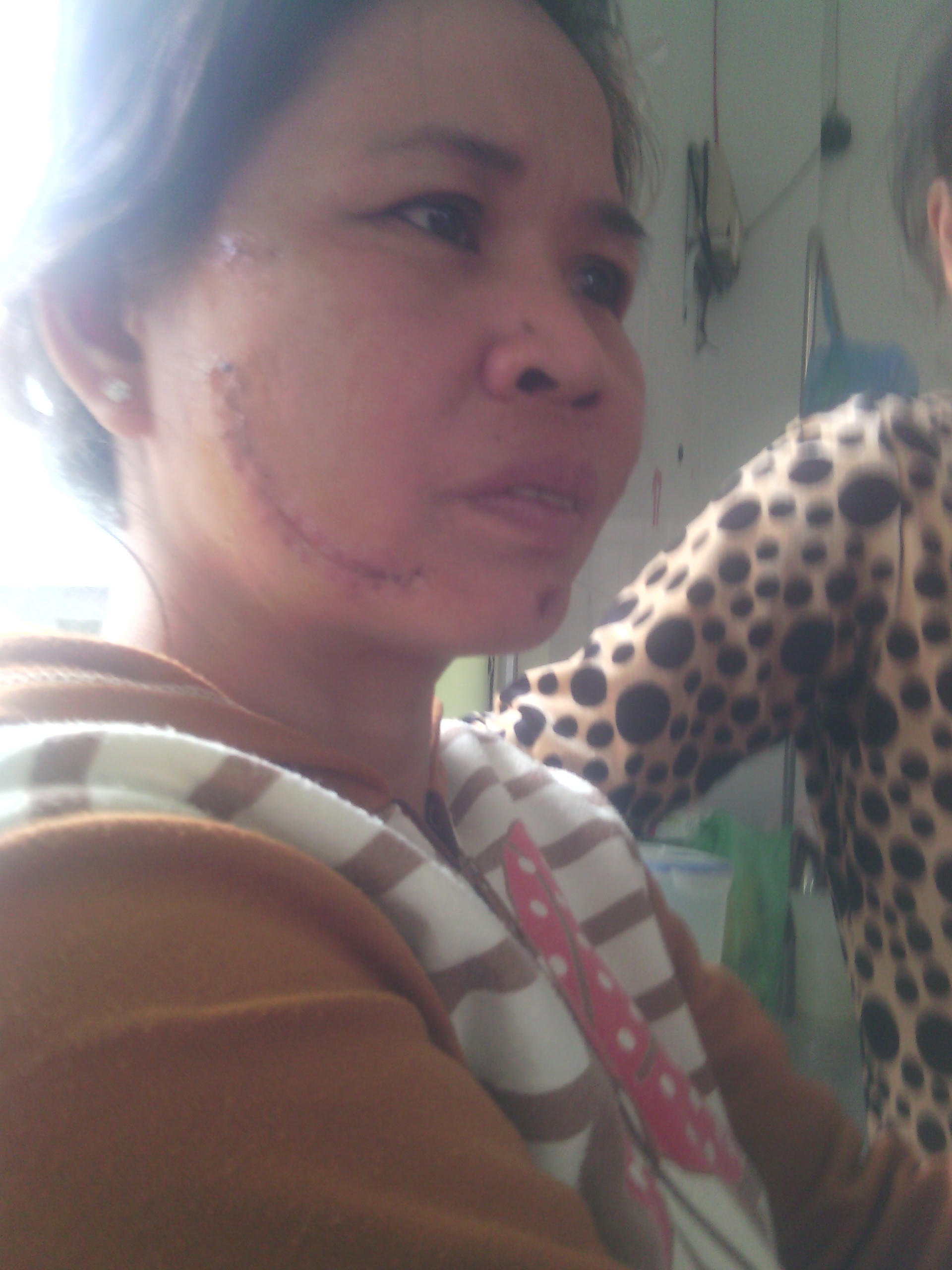 Các bác sĩ đã tiến hành cầm máu, tiêm thuốc trợ lực, gây mê và thực hiện thủ thuật khâu hơn 20 mũi trên mặt bệnh nhân. “Giờ các vết dao cắt đã ăn da non, nhưng để hồi phục tui còn phải điều trị lâu lắm. Người ta bảo sau này sẽ để lại những vết sẹo. Muốn hết sẹo phải phải điều trị thẩm mĩ, nghèo khó thế này chắc tui phải chấp nhận mang gương mặt đầy sẹo suốt đời thôi”, bà Linh than thở.