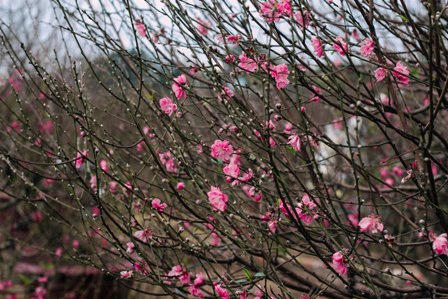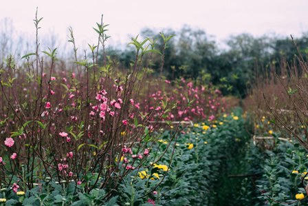 | Tại một vài vườn đào Nhật Tân (quận Tây Hồ), đã xuất hiện những cây đào nở hoa sớm. |